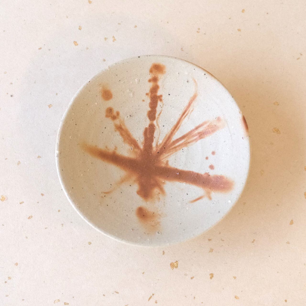 やや深さのあるシンプルなデザインの豆鉢です。ワラの触れた部分が赤く発色し、地色とのコントラストを生み出しています。