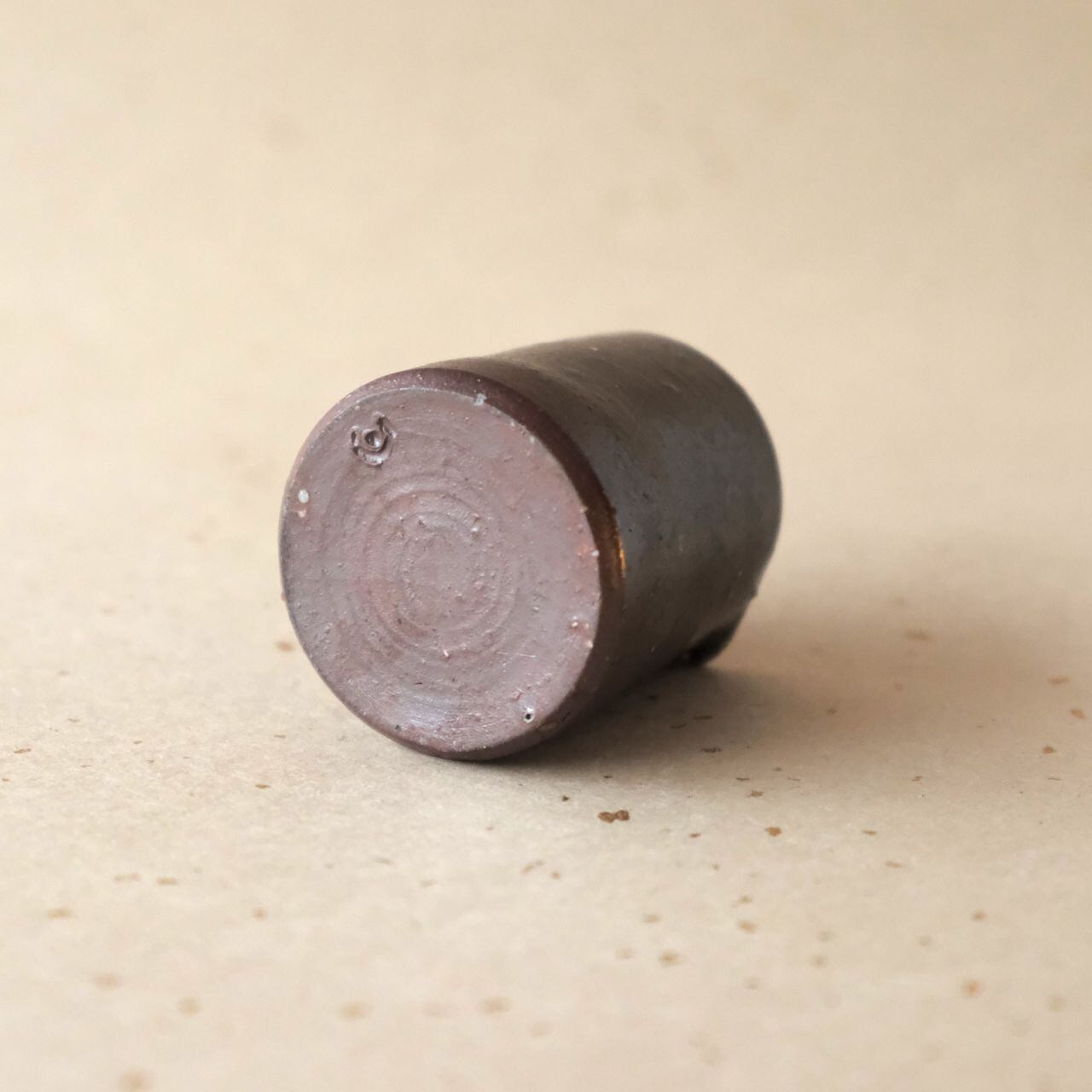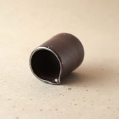 注ぎ口の付いた小品です。燃料である松割木の灰が降りかかって溶けた部分が、黄みがかった色合いになっています。