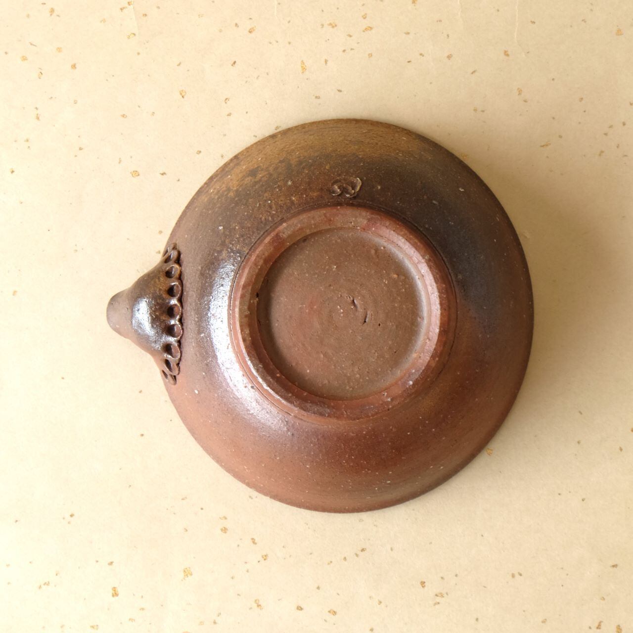 片口のデザインを施した小鉢です。サラダや煮物などを盛るうつわとして使っていただけます。燃料である松割木の灰が降り掛かって溶けた部分が、黄土色に変化しています。
