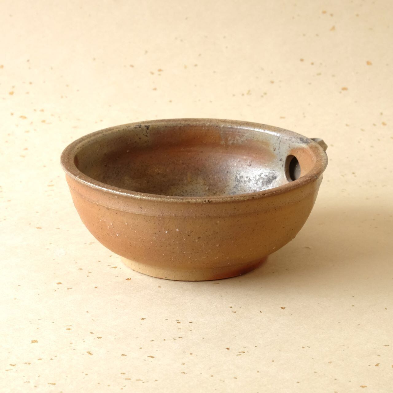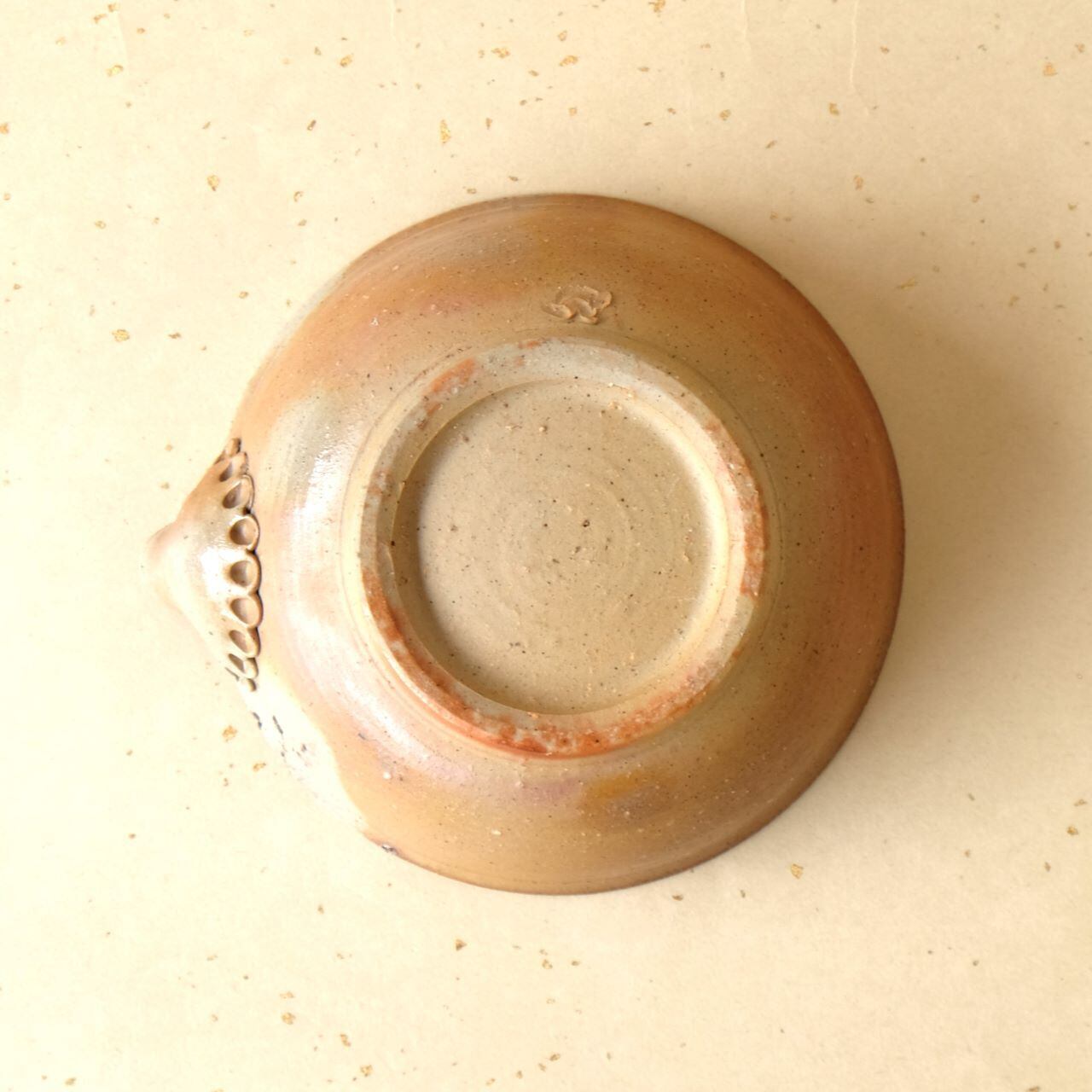 片口のデザインを施した小鉢です。サラダや煮物などを盛るうつわとして使っていただけます。燃料の松割木の灰や炭の作用によって生まれた変化に丸い抜け模様がアクセントになっています。