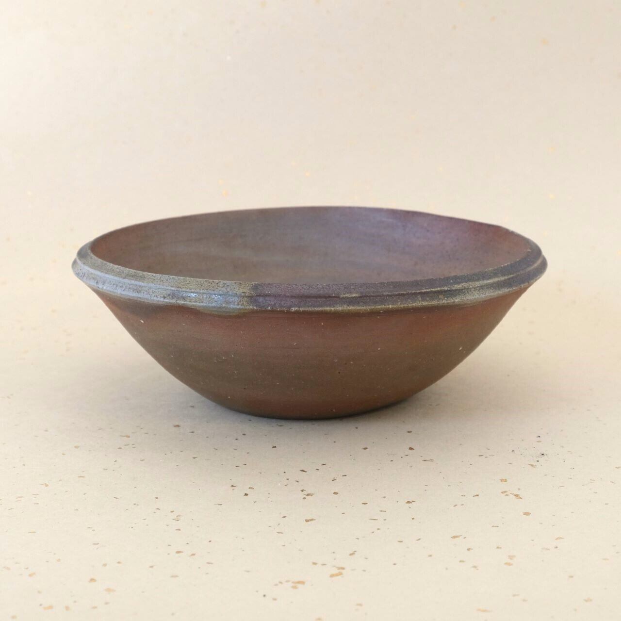 シンプルなデザインで浅めの鉢です。煮物やサラダなど料理だけでなく、菓子器としても使っていただけます。中央の抜け部分(牡丹餅)が景色のアクセントになっています。