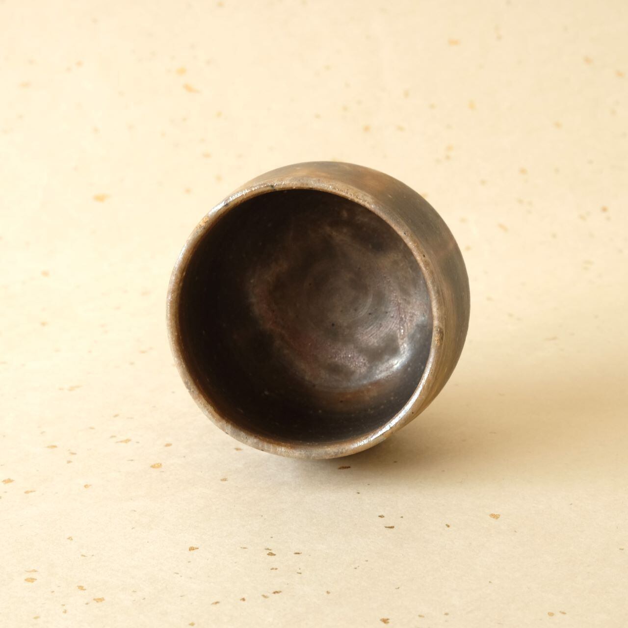 日本酒との相性が抜群のぐい呑です。木炭から発せられるガスの影響を受けて、うつわ全体だけでなく、ワラを巻いていた部分も珍しい色合いとなっています。
