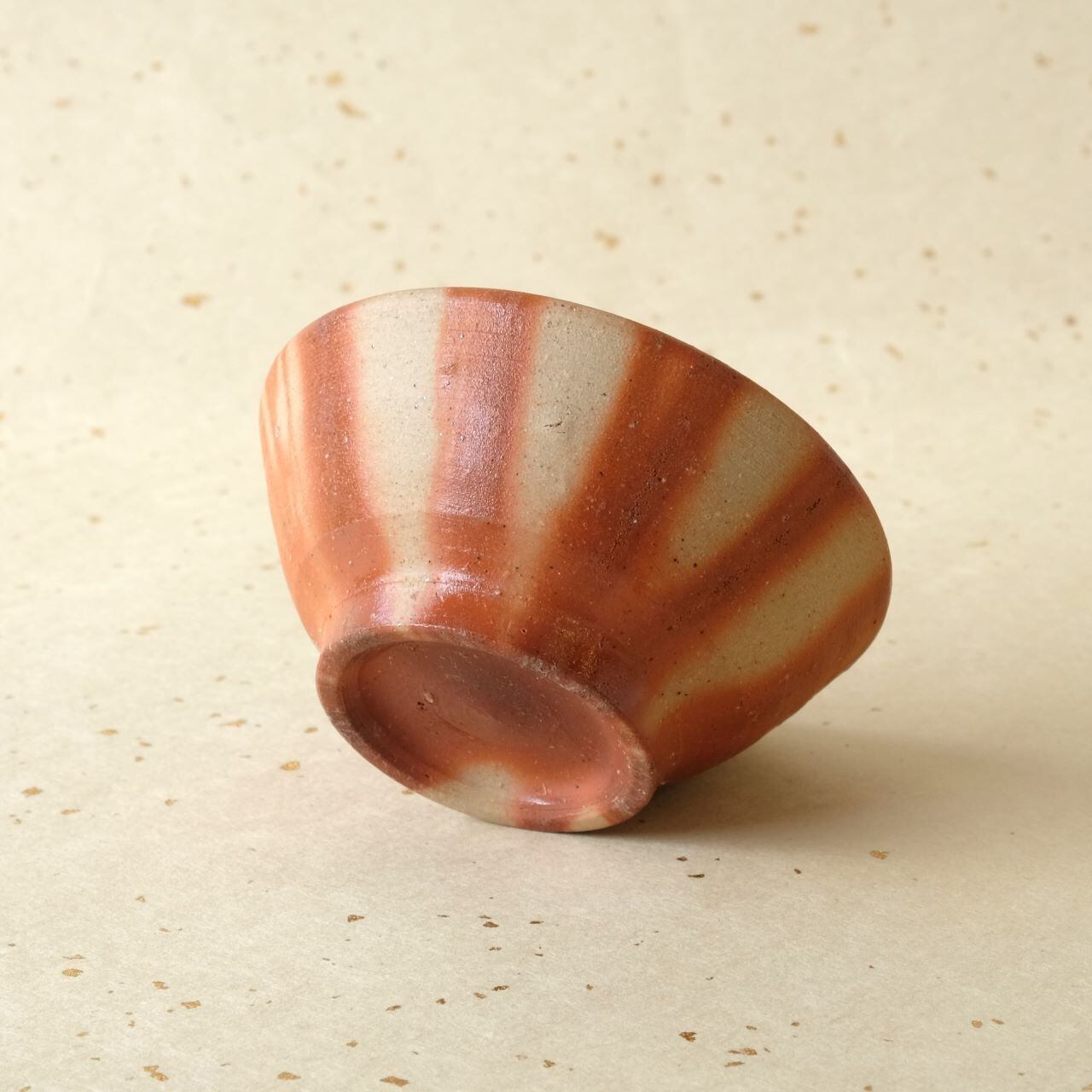 日本酒との相性が抜群の盃形のぐい呑です。料理の豆鉢としても使っていただけます。ワラをまいた部分が赤く発色し、景色となっています。