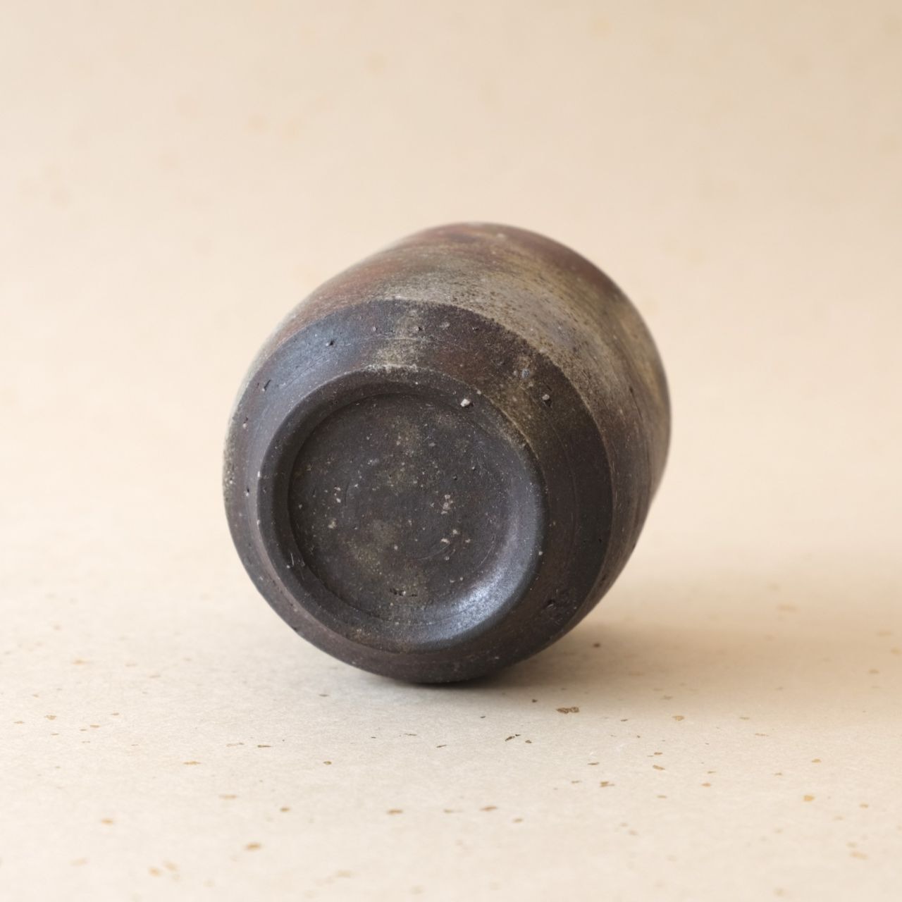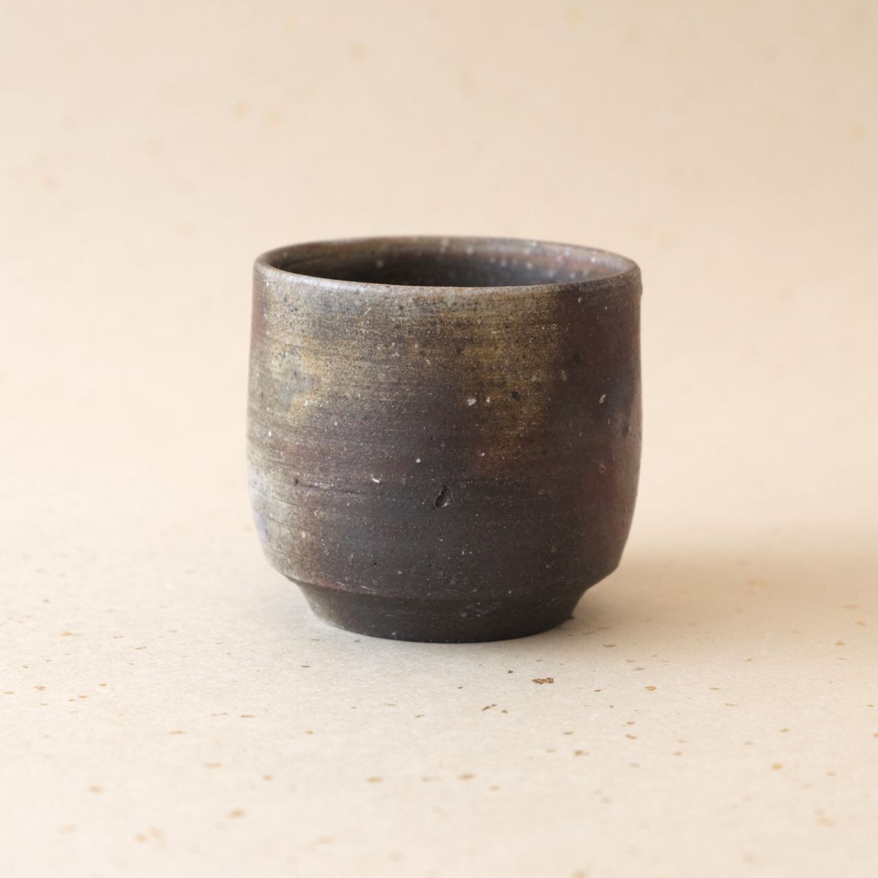 小ぶりの湯呑です。お茶を飲んだり、コーヒーを飲んだりとさまざまな場面でご使用いただけます。うつわの側面には、木炭のガスの作用により、青味がかった色合いが現れています。