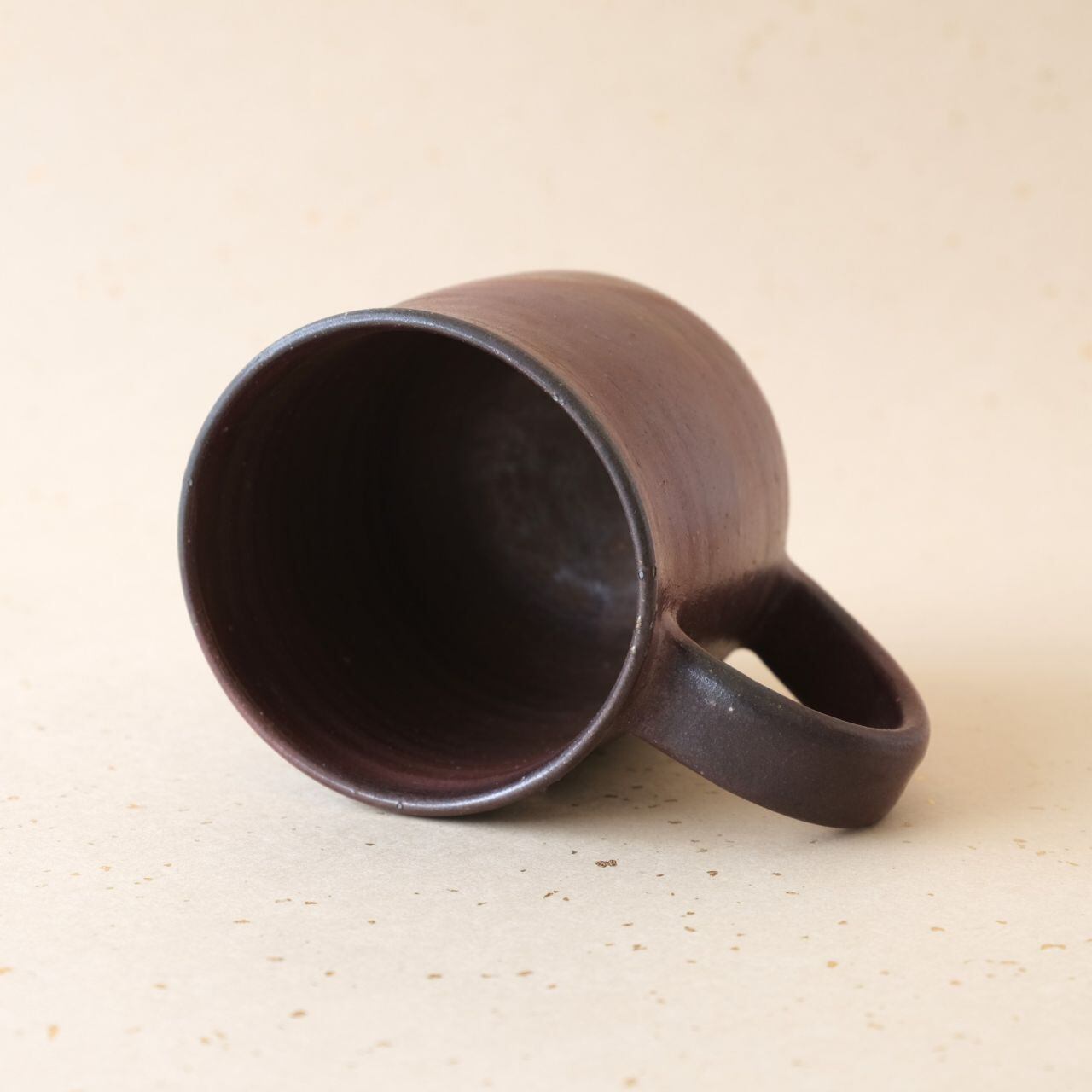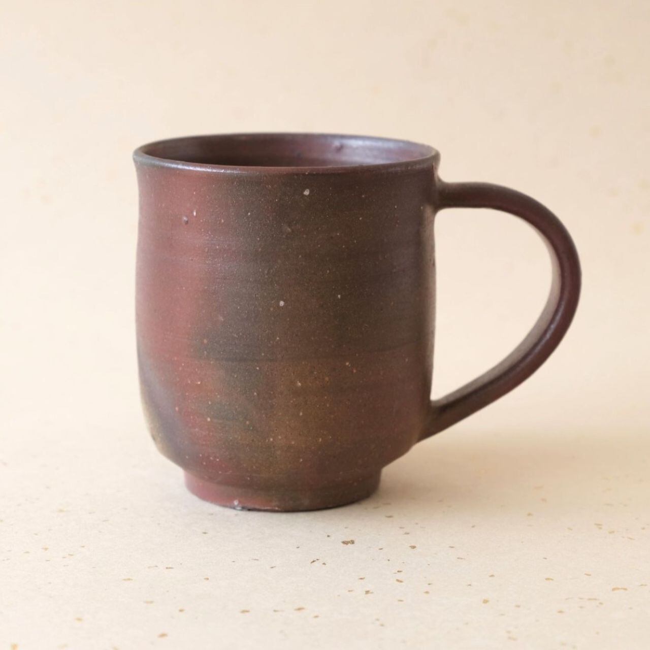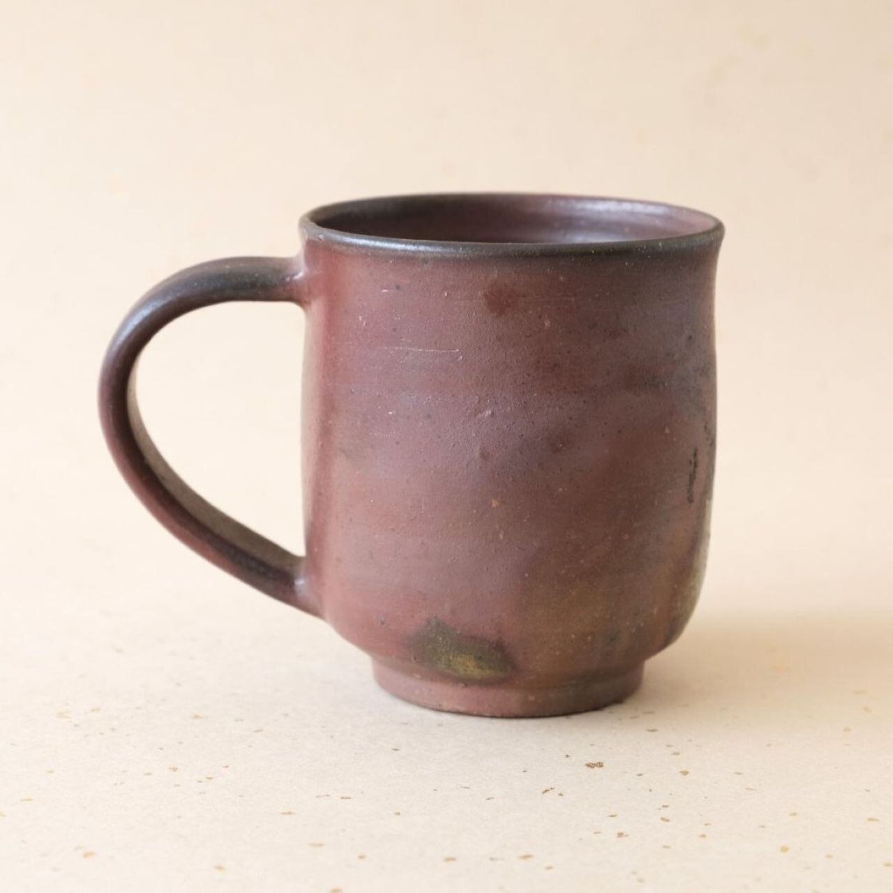 大ぶりなマグです。ビールを飲むジョッキとしてもご使用いただけます。うつわの側面には、木炭のガスの作用により、青味がかった色合いが現れています。