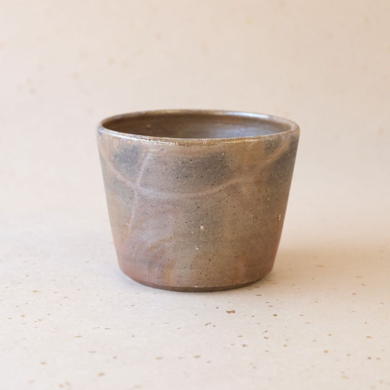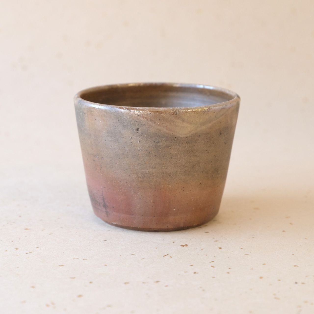 フリーカップとしても使っていただけるシンプルなデザインの蕎麦猪口です。うつわの側面には、木炭のガスの作用により、グラデーション模様が現れています。