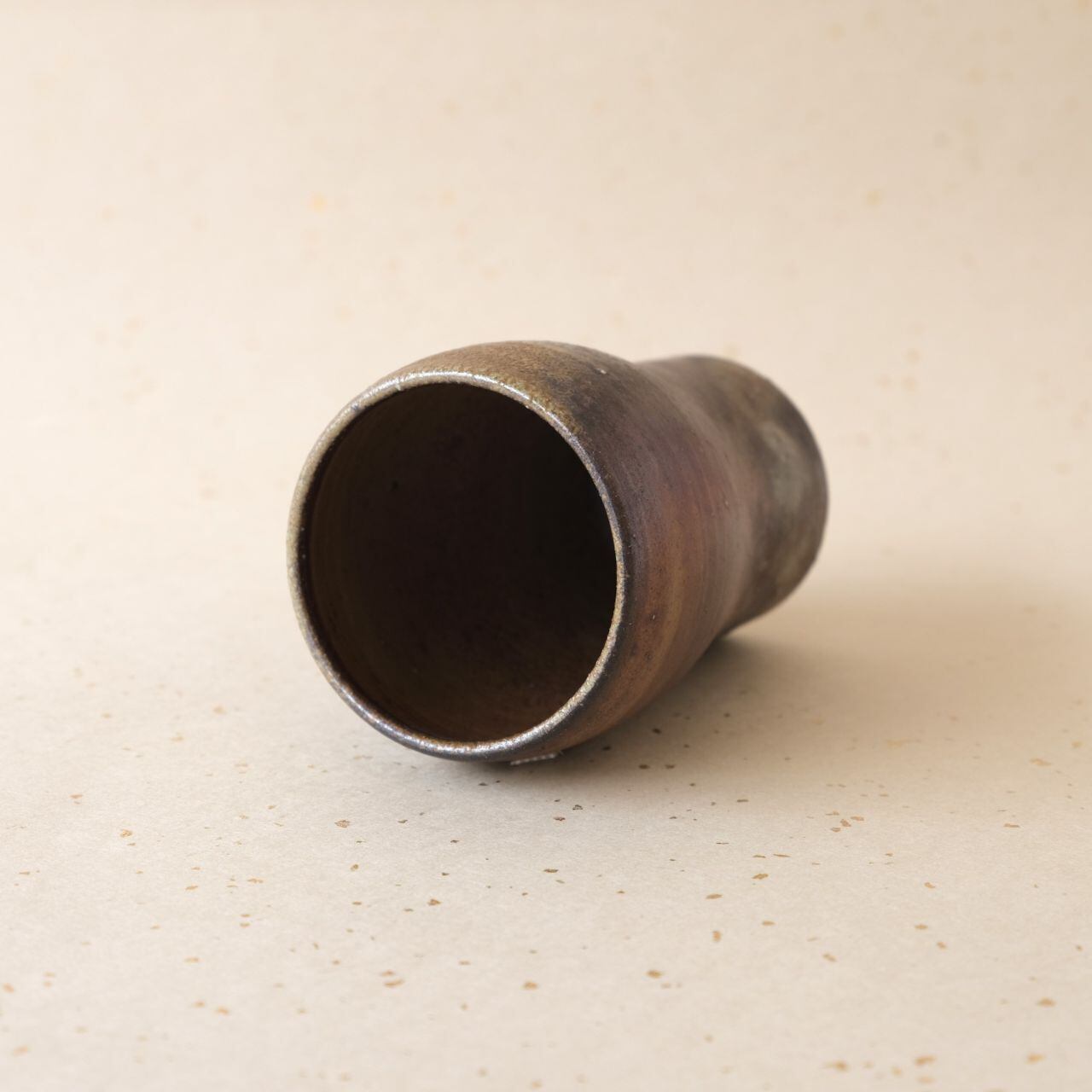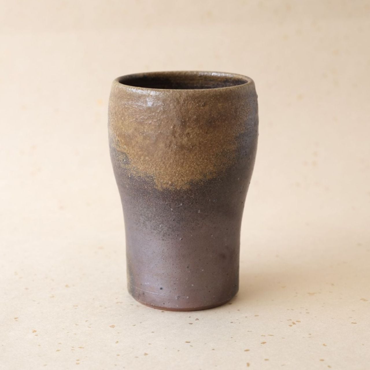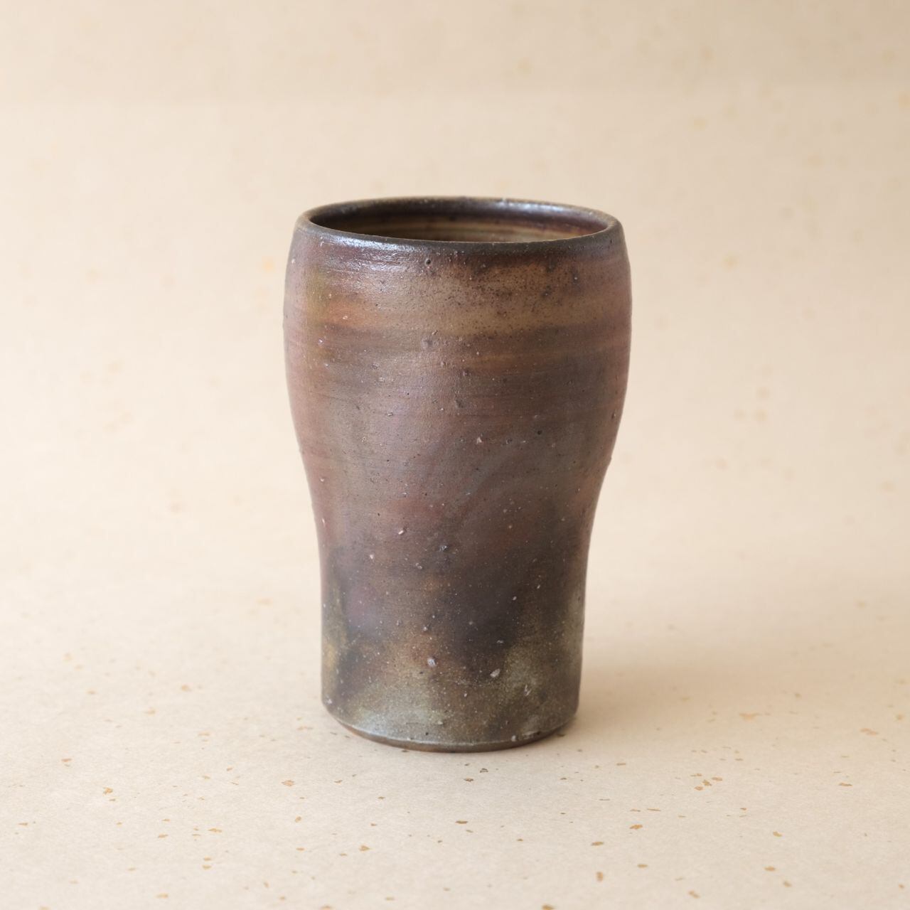丸みおびたデザインのビアマグです。ビールが美味しくいただけると言われています。燃料の松割木の灰が付着した面と木炭のガスの作用により変化が出た面の両面をお楽しみいただけます。