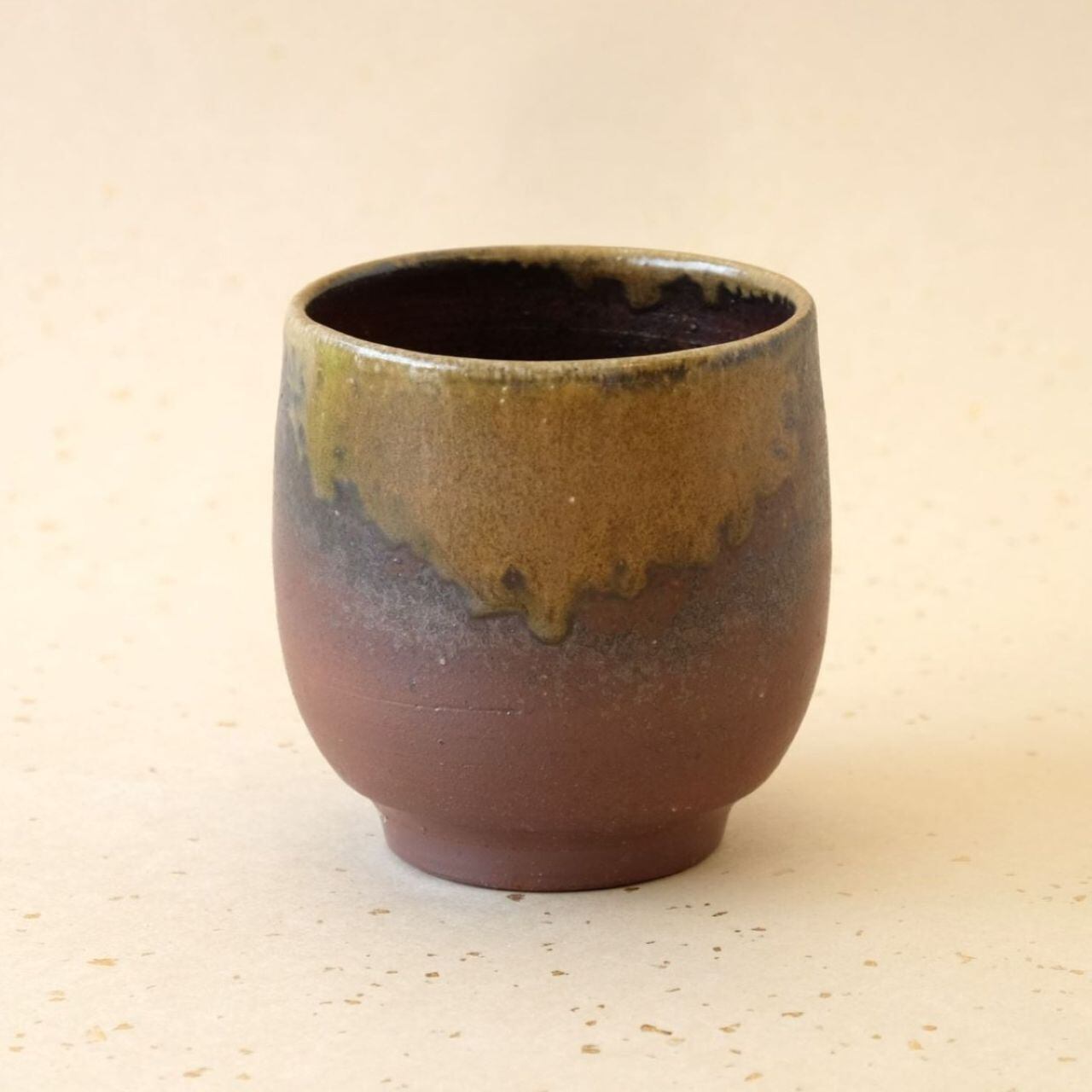 標準サイズの湯呑です。お茶だけでなく、さまざまな飲み物のうつわとしても使っていただけます。燃料の松割木の灰が付着した部分が黄土色に変化し、景色となっています。