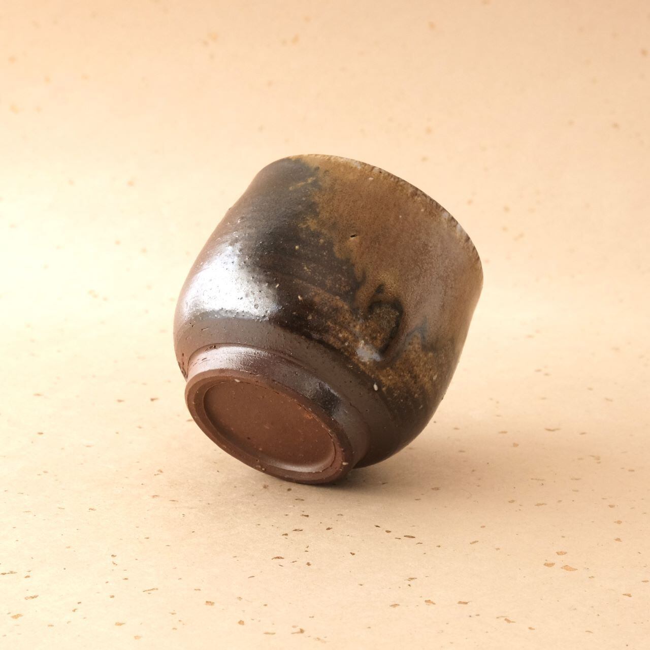 小ぶりの湯呑です。お茶を飲んだり、コーヒーを飲んだりとさまざまな場面でご使用いただけます。うつわの側面には、燃料の松割木の灰が付着し、黄味がかった色合いが現れています。
