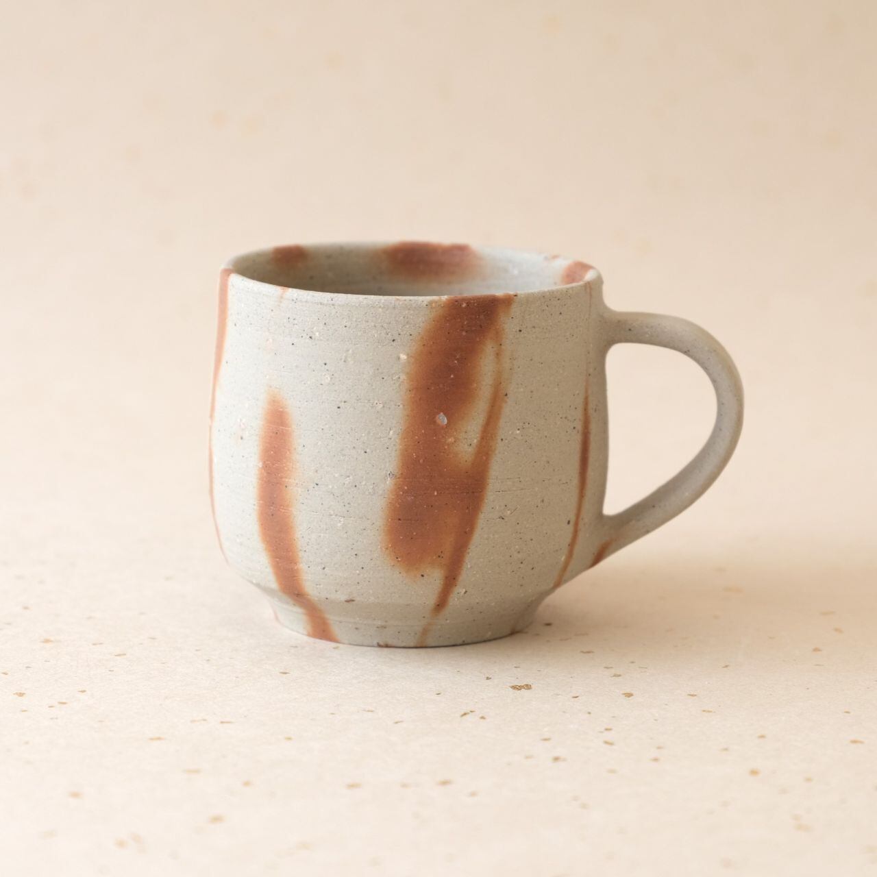 標準サイズのコーヒーカップです。コーヒーの苦味を和らげてくれると言われています。うつわの側面にワラを巻いた部分が赤く発色し、柔らかい雰囲気となっています。