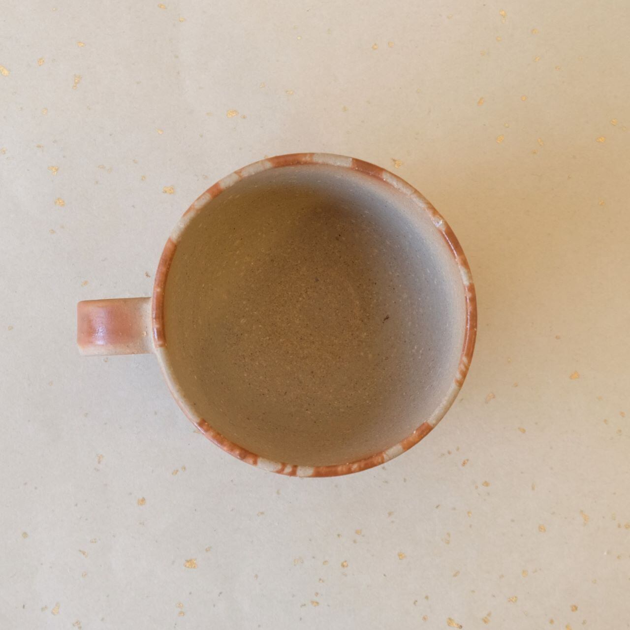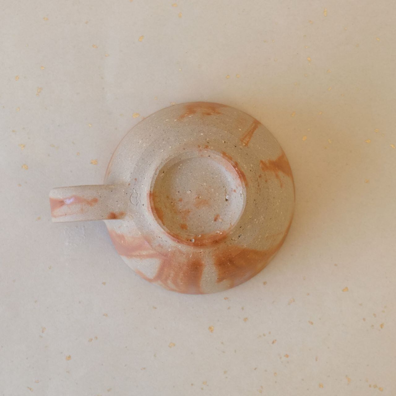 丸形のコーヒーカップです。コーヒーの苦味を和らげてくれると言われています。うつわの側面にワラを巻いた部分が赤く発色し、柔らかい雰囲気となっています。