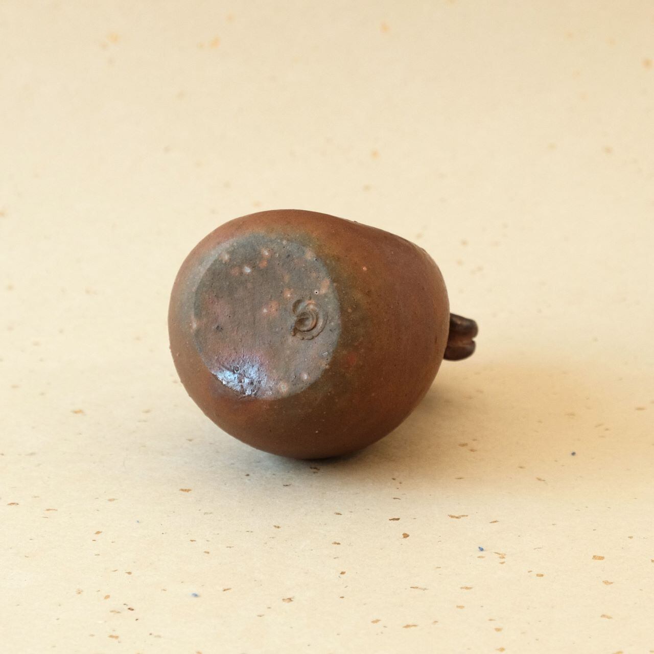 耳のような装飾や変形を加えた豆花入です。燃料である松割木の灰が付着した部分は、黄みがかった色合いに変化し、見所となっています。