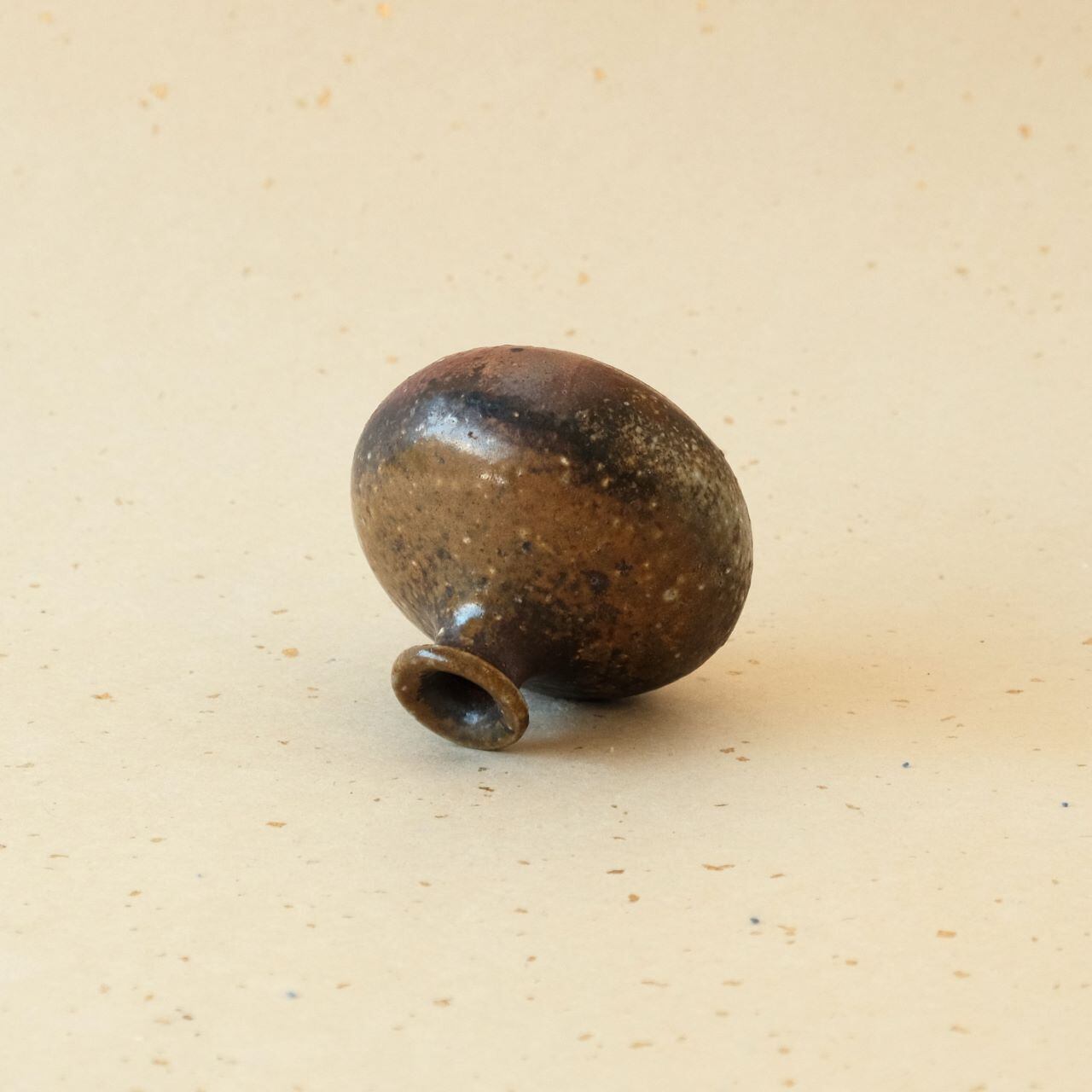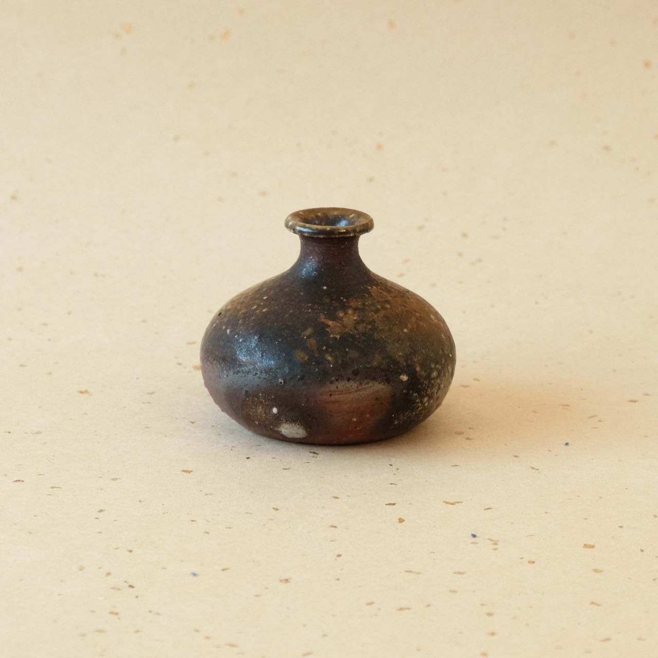 一輪花入などに使っていただける小さな徳利です。燃料の松割木の灰や木炭のガスの影響を受けて、多彩な変化が生まれています。