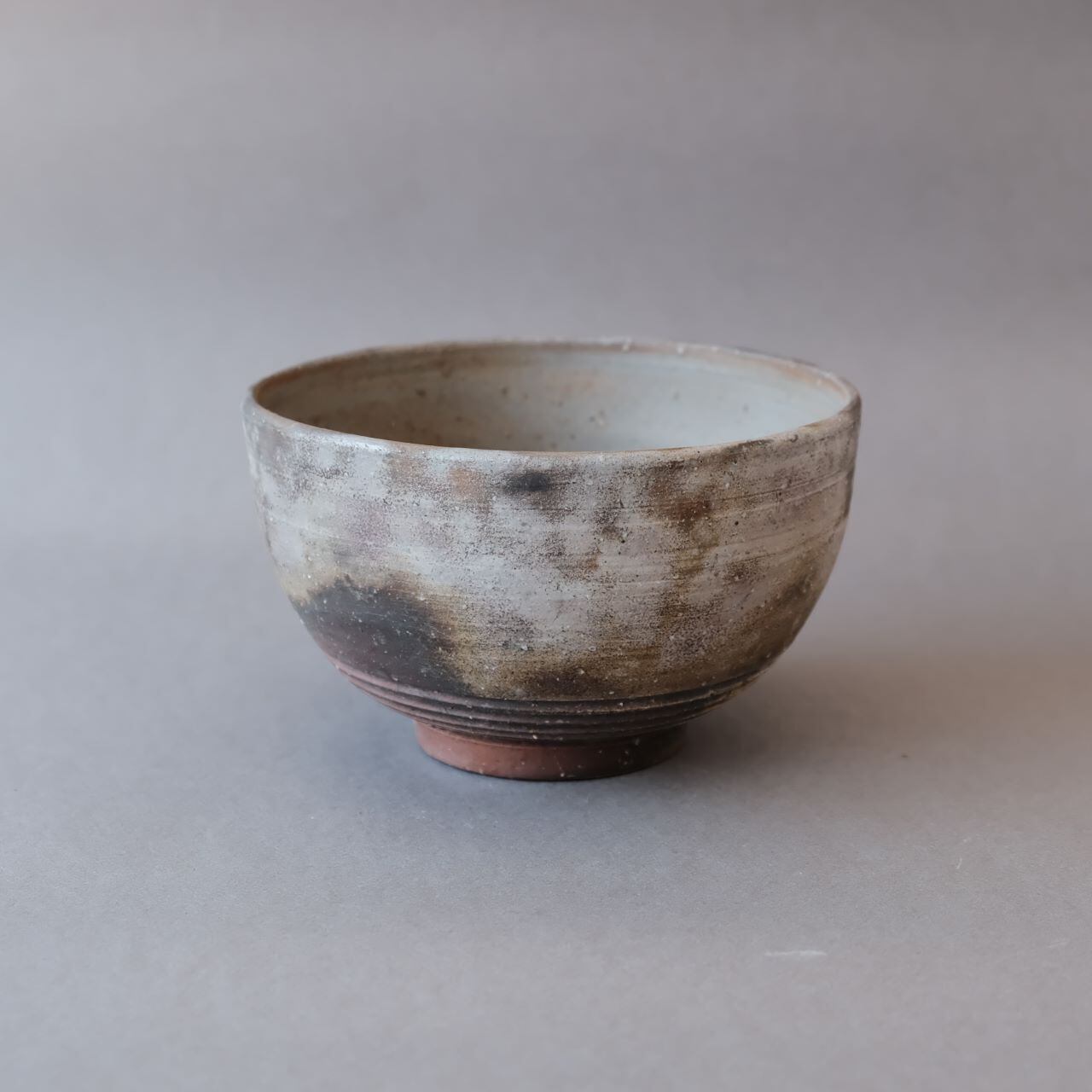 シンプルなデザインの鉢です。丼ものやうどんなどに使っていただけます。伏せた状態で焼成したため、木炭のガスの影響を受けた外面には、青みがかった変化が見られます。