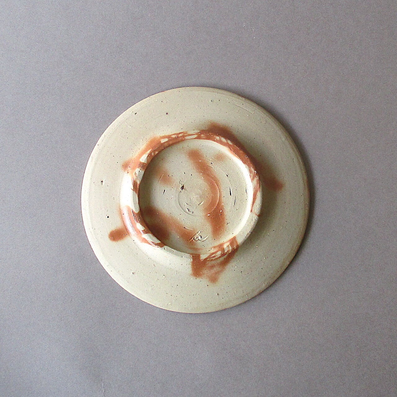 シンプルな丸形のお皿です。ワラの接した部分が赤く発色し、明るい雰囲気に仕上がっています。