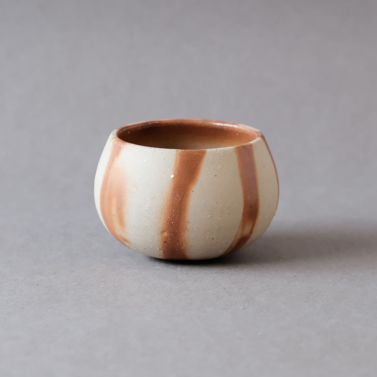 ゆらゆらと揺れるぐい呑です。ワラの接した部分が赤く発色し、明るい雰囲気に仕上がっています。