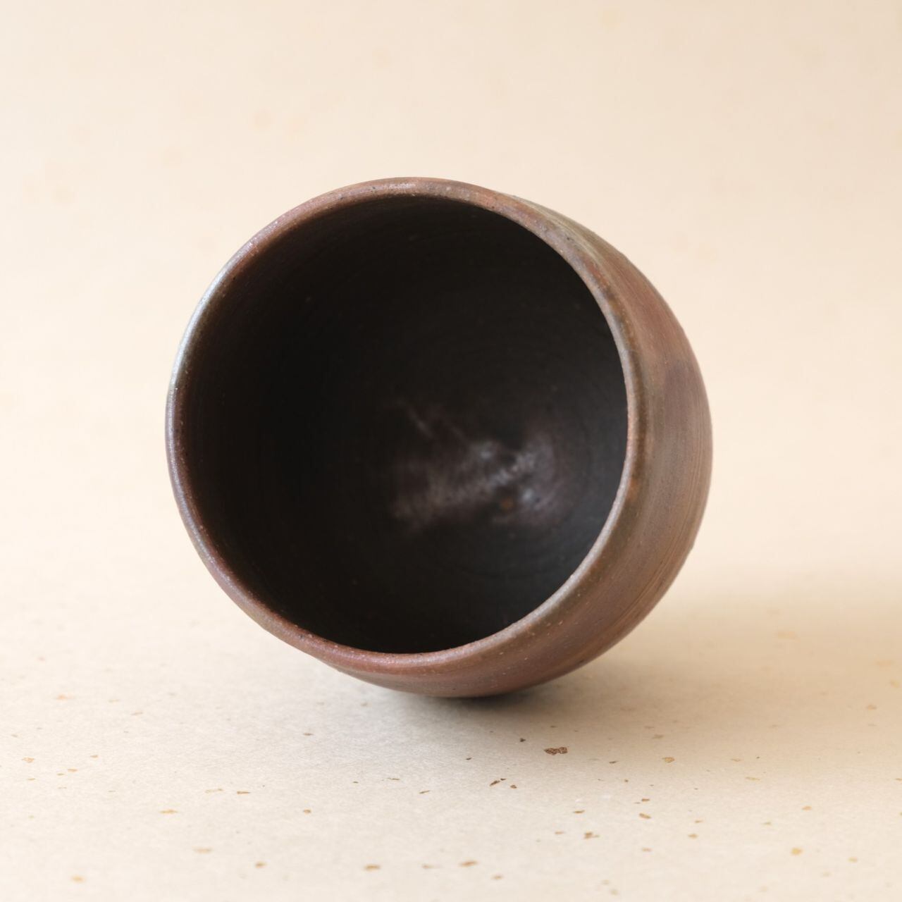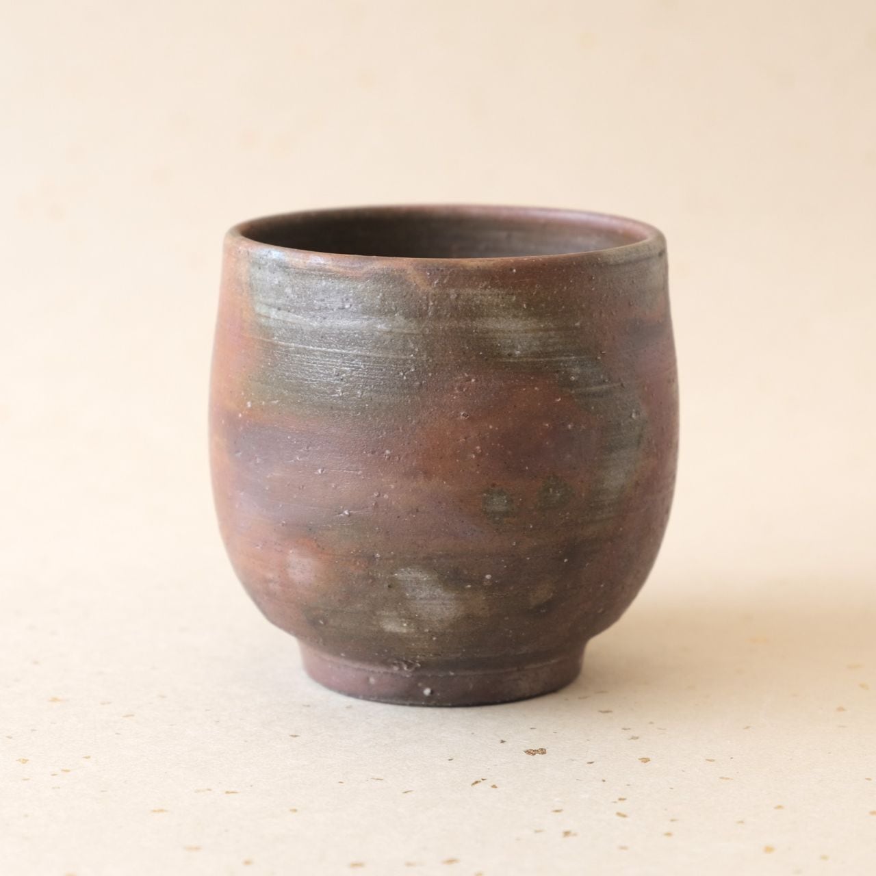 標準サイズの湯呑です。お茶だけでなく、さまざまな飲み物のうつわとしても使っていただけます。うつわの側面には、木炭のガスの作用により、さまざまな景色が現れています。