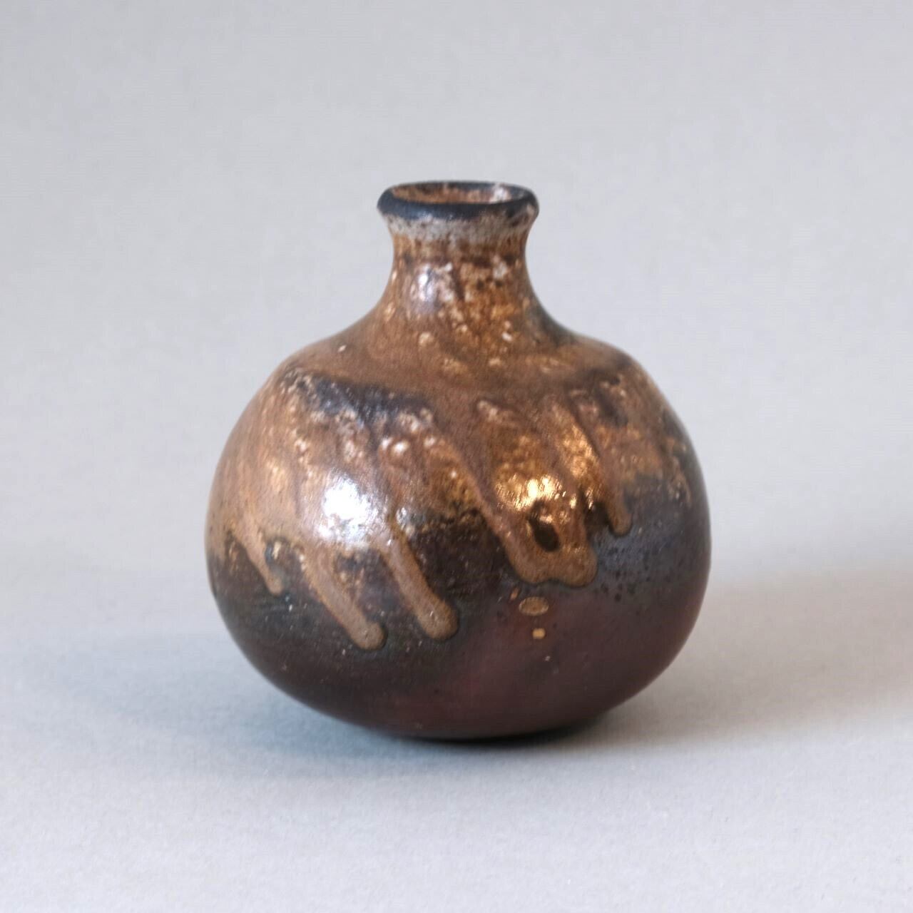 ゆらゆらと揺れる徳利です。焚口の近くで焼成することで、燃料の松割木の灰が降りかかり、高温で溶け出した部分などが良い景色となっています。