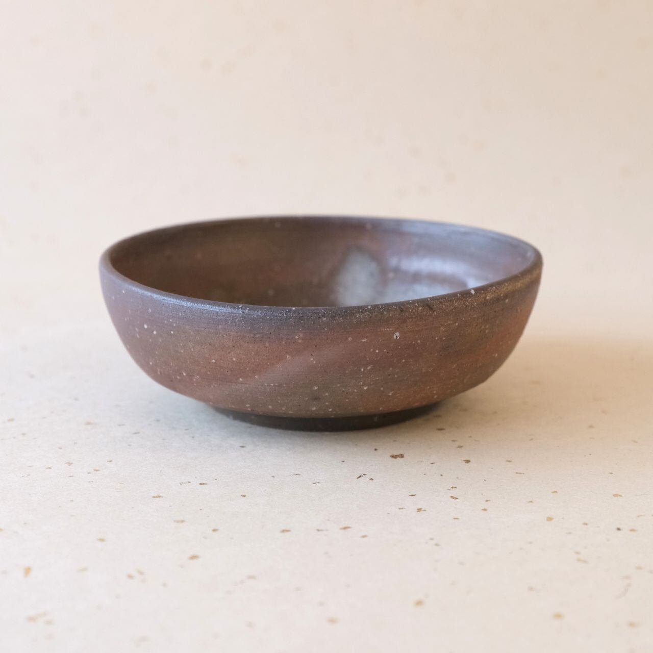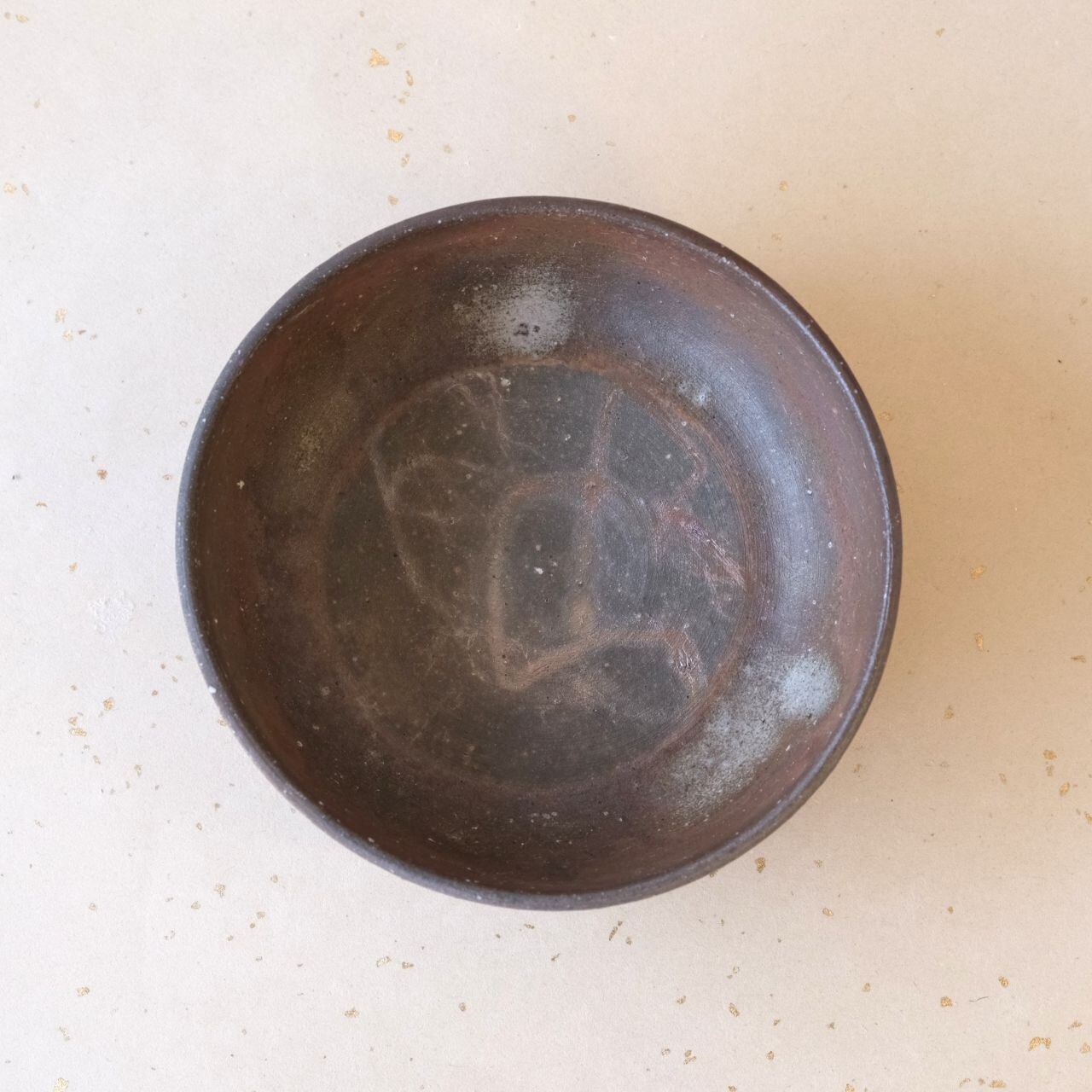 取り皿としても使える平鉢です。深さもあるので汁気のある料理でも対応可能です。内側には、燃料の松割木の灰や木炭のガスの影響を受け、様々な変化が生まれています。