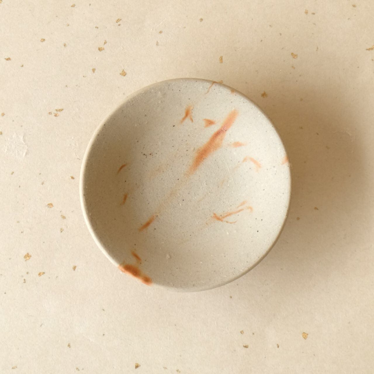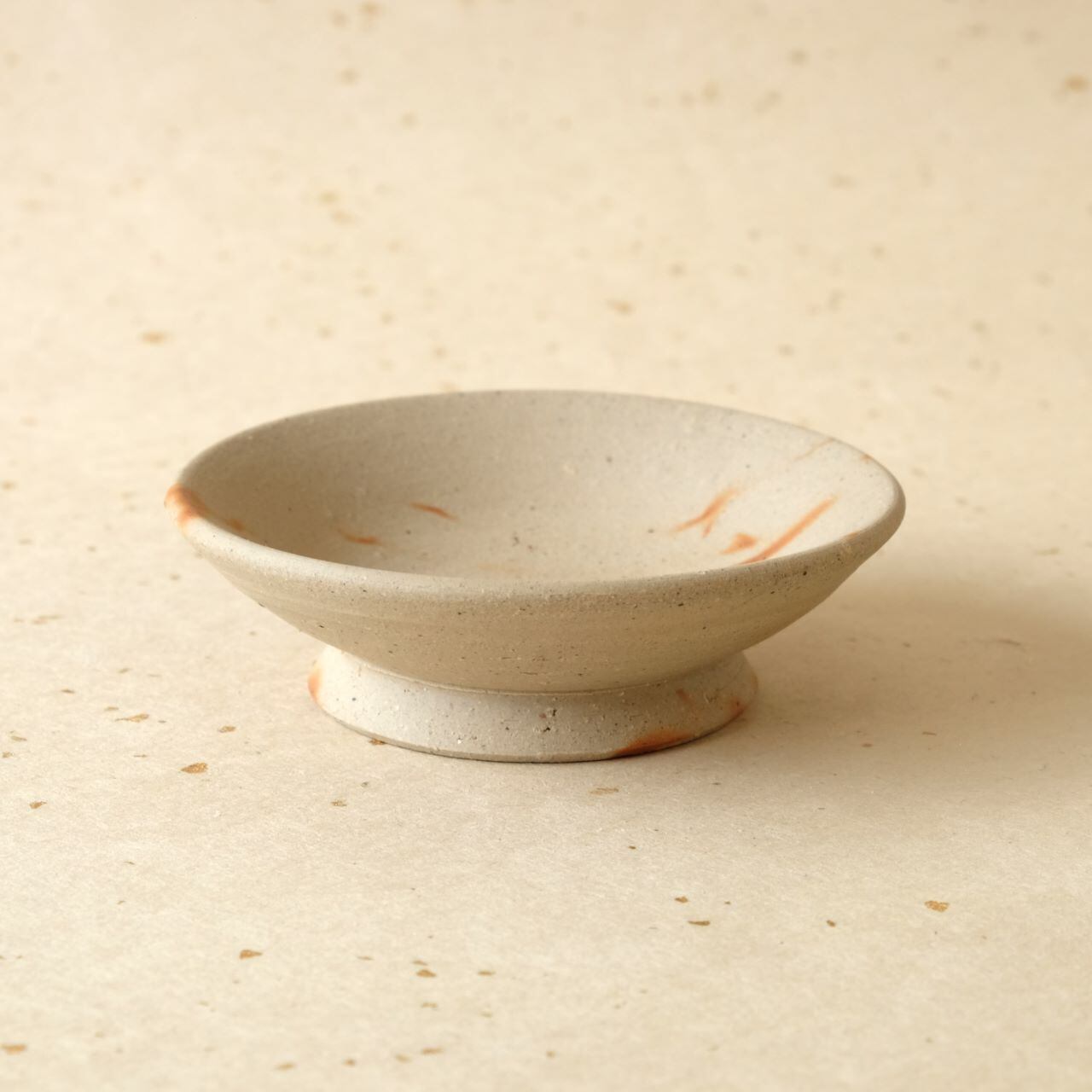 やや高めの高台を削り出した台付きの豆鉢です。ワラの触れた部分が赤く発色し、地色とのコントラストを生み出しています。