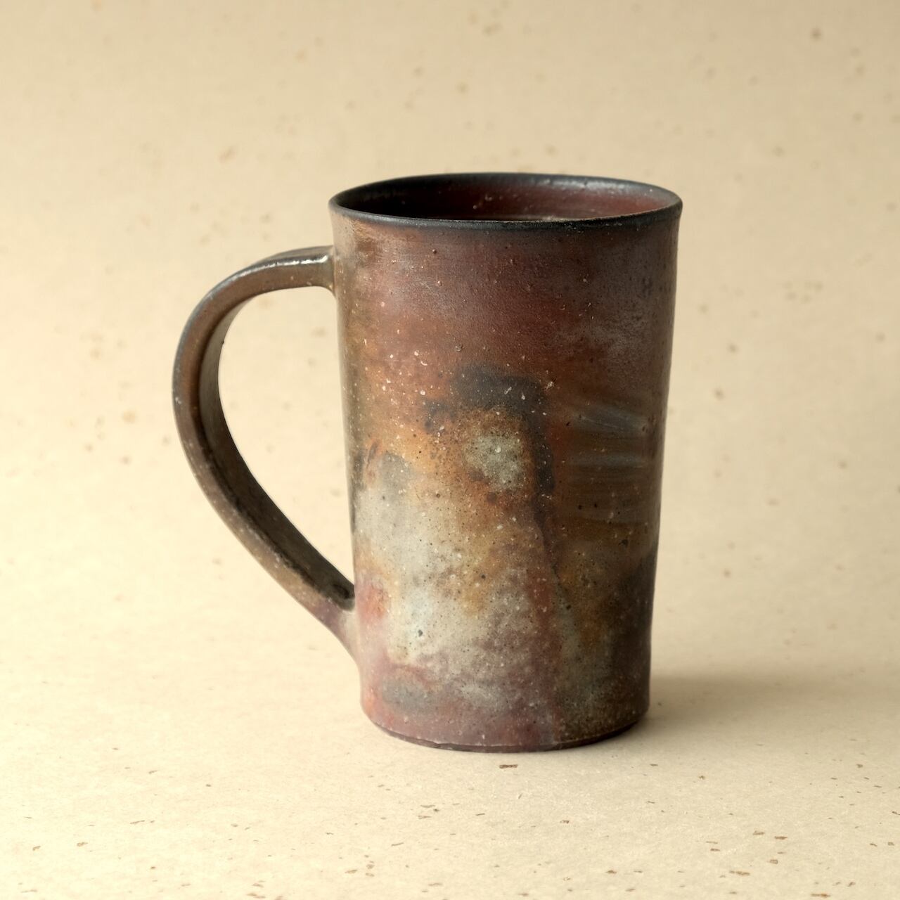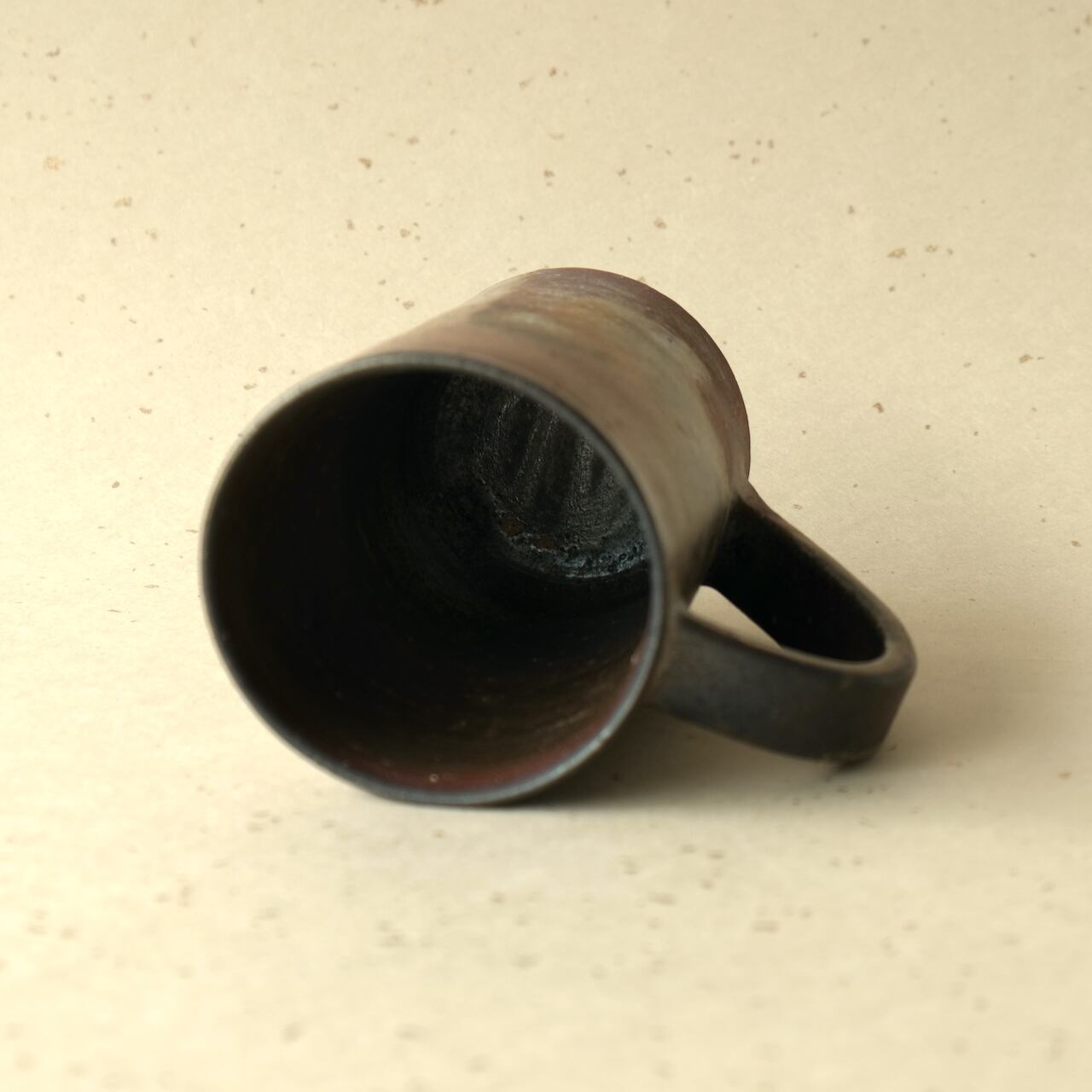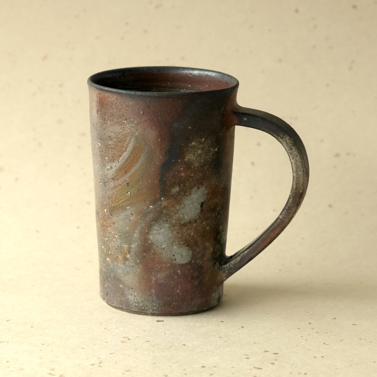 縦長のマグです。ビールを飲むジョッキとしてもご使用いただけます。木炭のガスの作用によるグラデーションを楽しんでいただけます。
