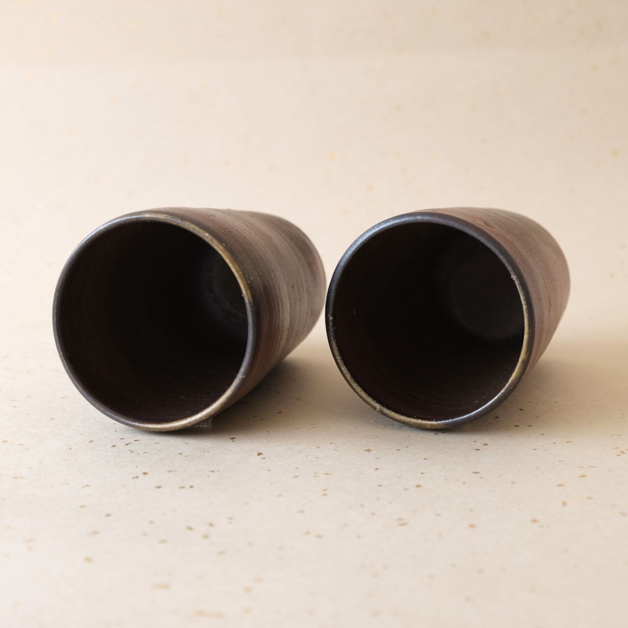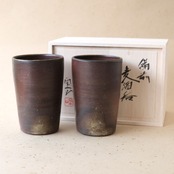 シンプルなデザインのビアマグセットです。ビールが美味しくいただけると言われています。木炭のガスの作用により変化が生まれ、独特のグラデーションとなっています。