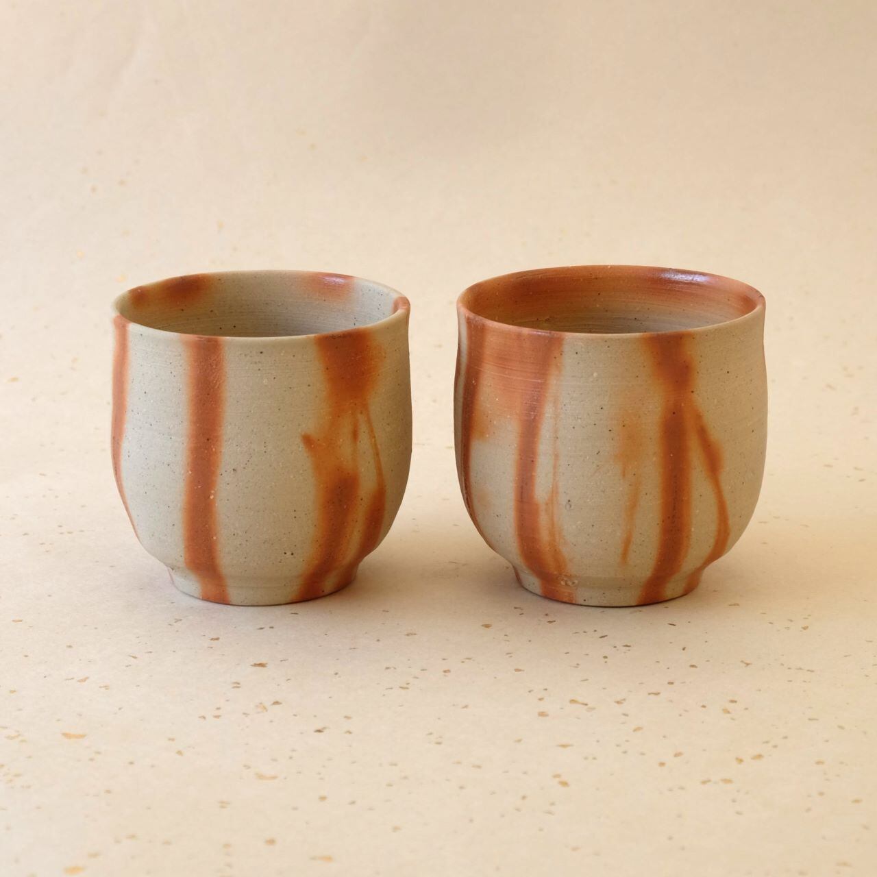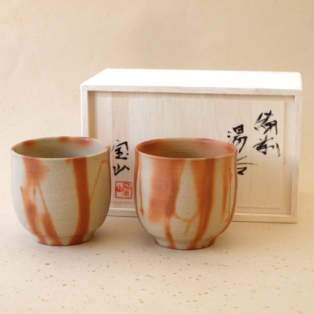 標準サイズの湯呑セットです。お茶だけでなく、さまざまな飲み物のうつわとしても使っていただけます。ワラを巻いていた部分が赤く発色し、景色となっています。