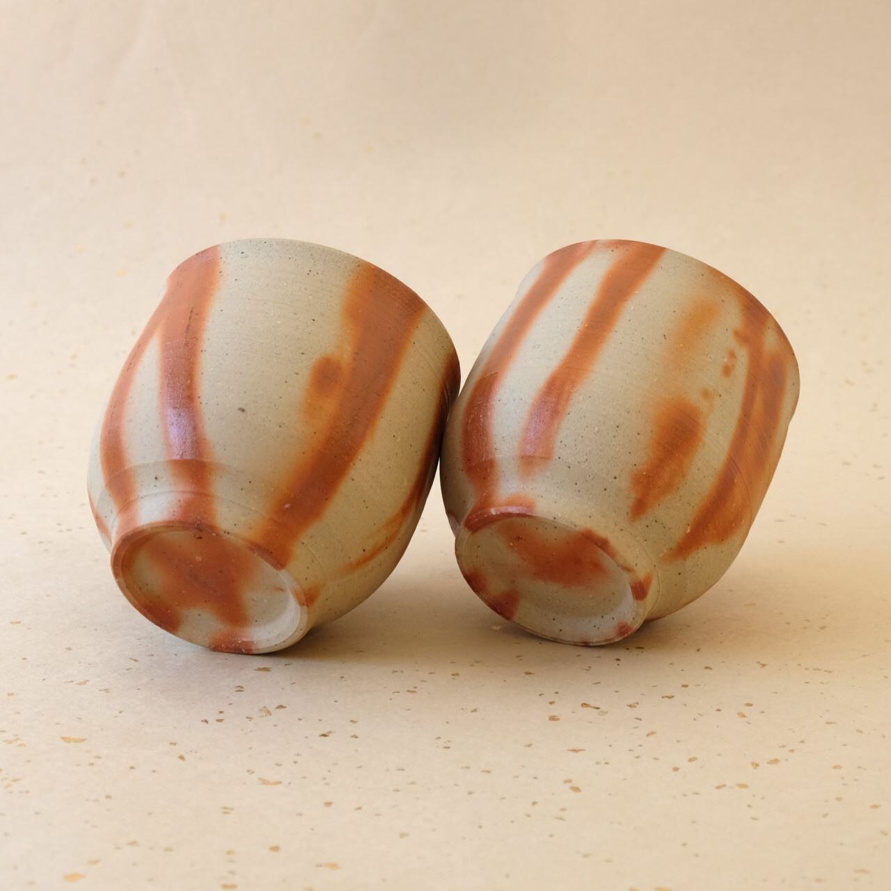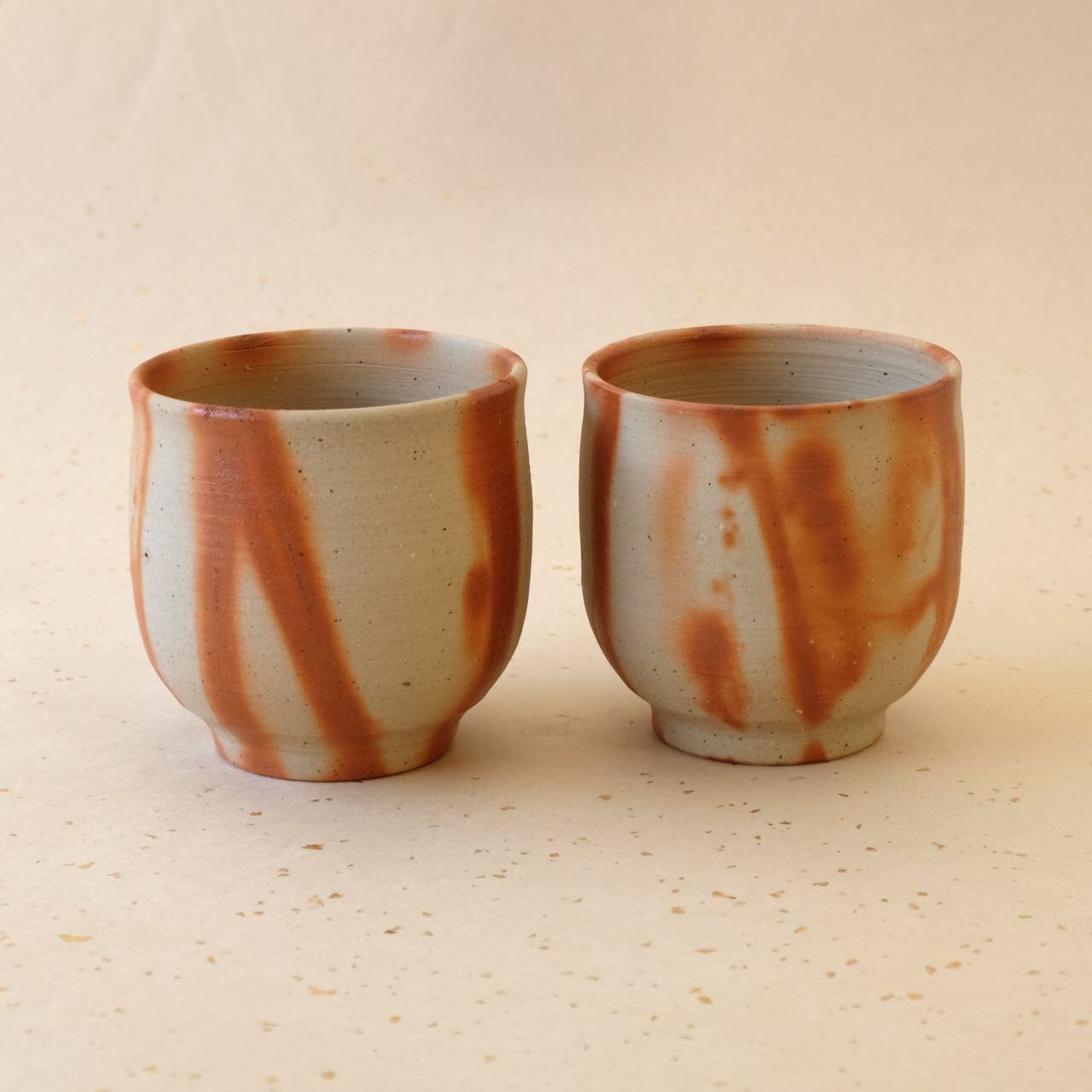 標準サイズの湯呑セットです。お茶だけでなく、さまざまな飲み物のうつわとしても使っていただけます。ワラを巻いていた部分が赤く発色し、景色となっています。