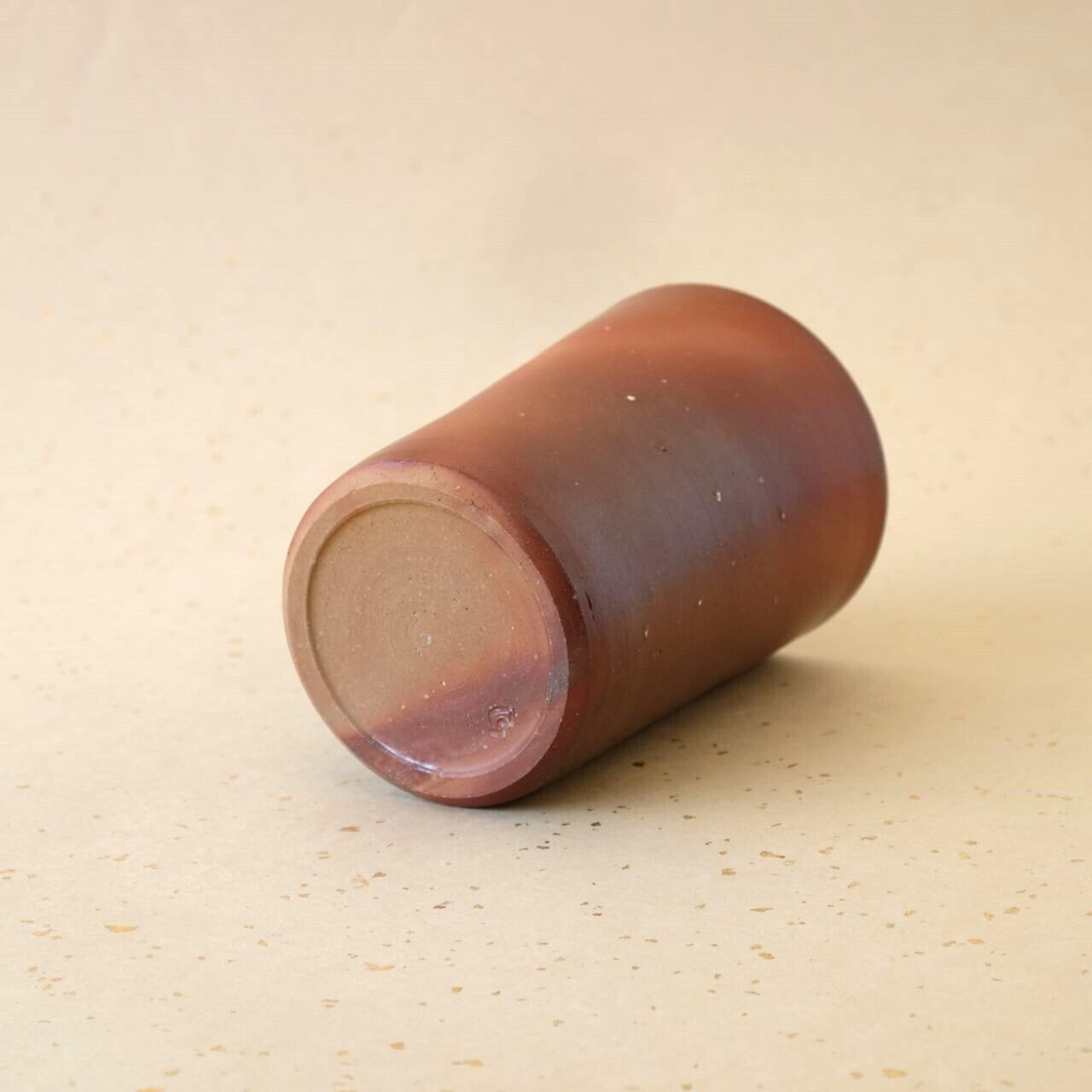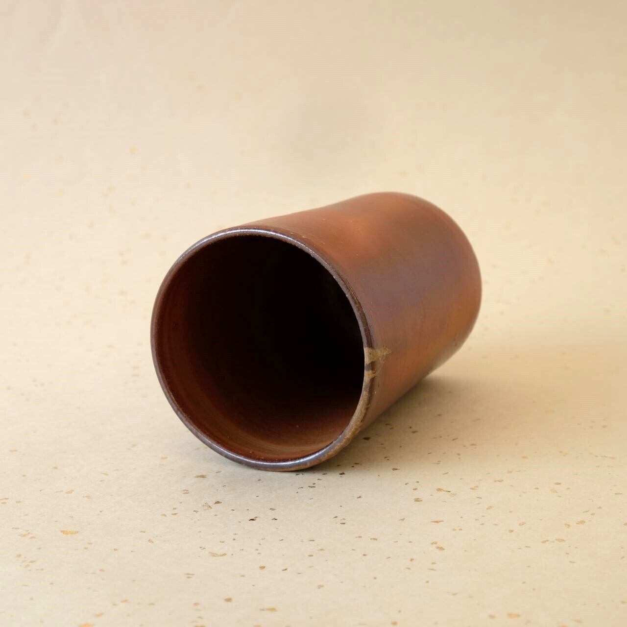 シンプルなデザインのビアマグです。ビールを美味しくいただけると言われています。全体的に赤みを帯びた色合いになっており、藁を巻いていた部分は濃赤色のラインとなっています。