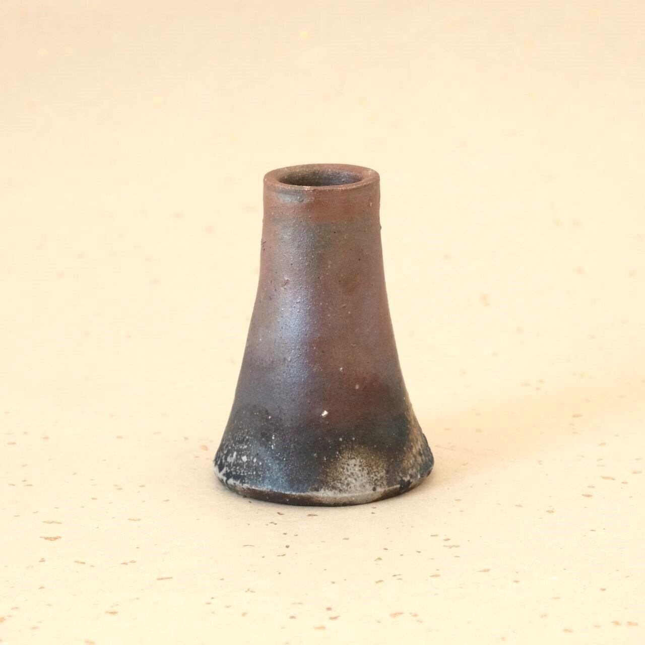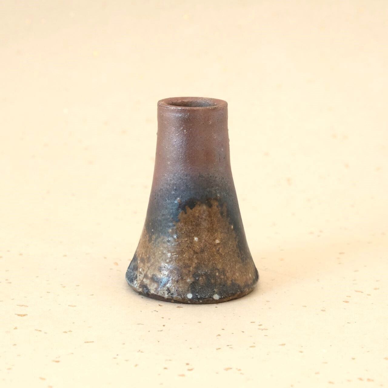 シンプルなデザインの豆花入です。燃料となる松割木の灰や木炭のガスの作用を受け、さまざまな表情が生まれています。