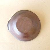 口縁部を変形させたシンプルなデザインの鉢です。煮物やサラダなど料理だけでなく、菓子器としても使っていただけます。燃料の松割木の灰が降りかかって溶けた部分が黄みがかった景色になっています。