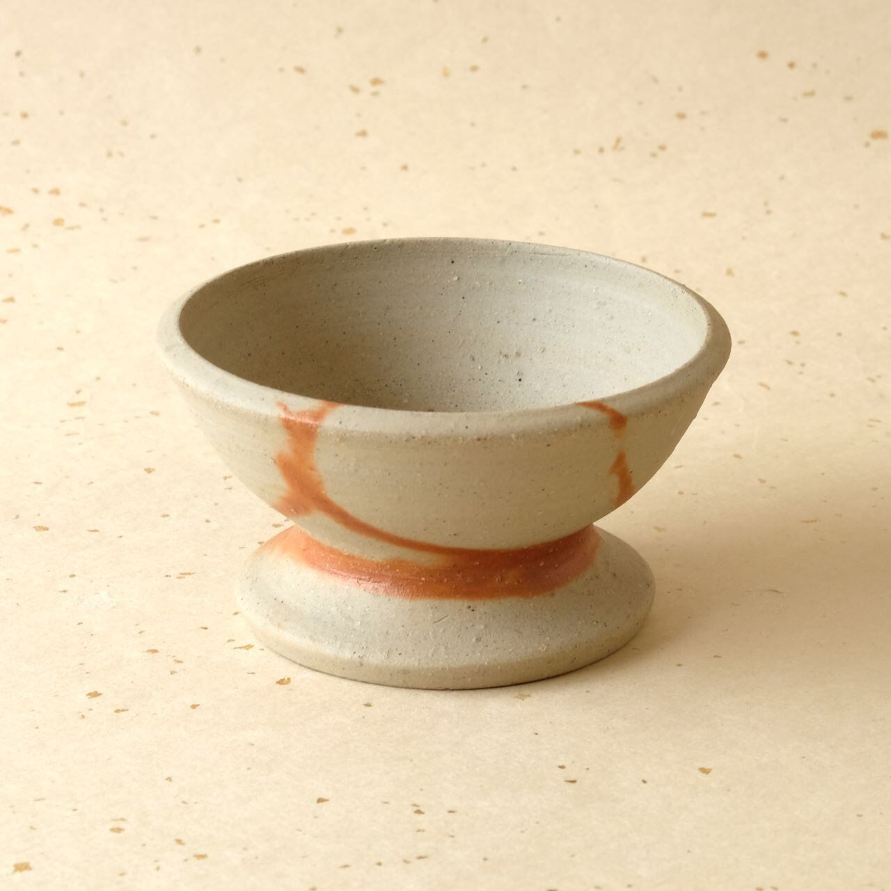 シンプルな形状の台付き小鉢です。料理やデザートのうつわだけでなく、小物入れなどにも使っていただけます。ワラの触れた部分が赤く発色し、変化を生みだしています。