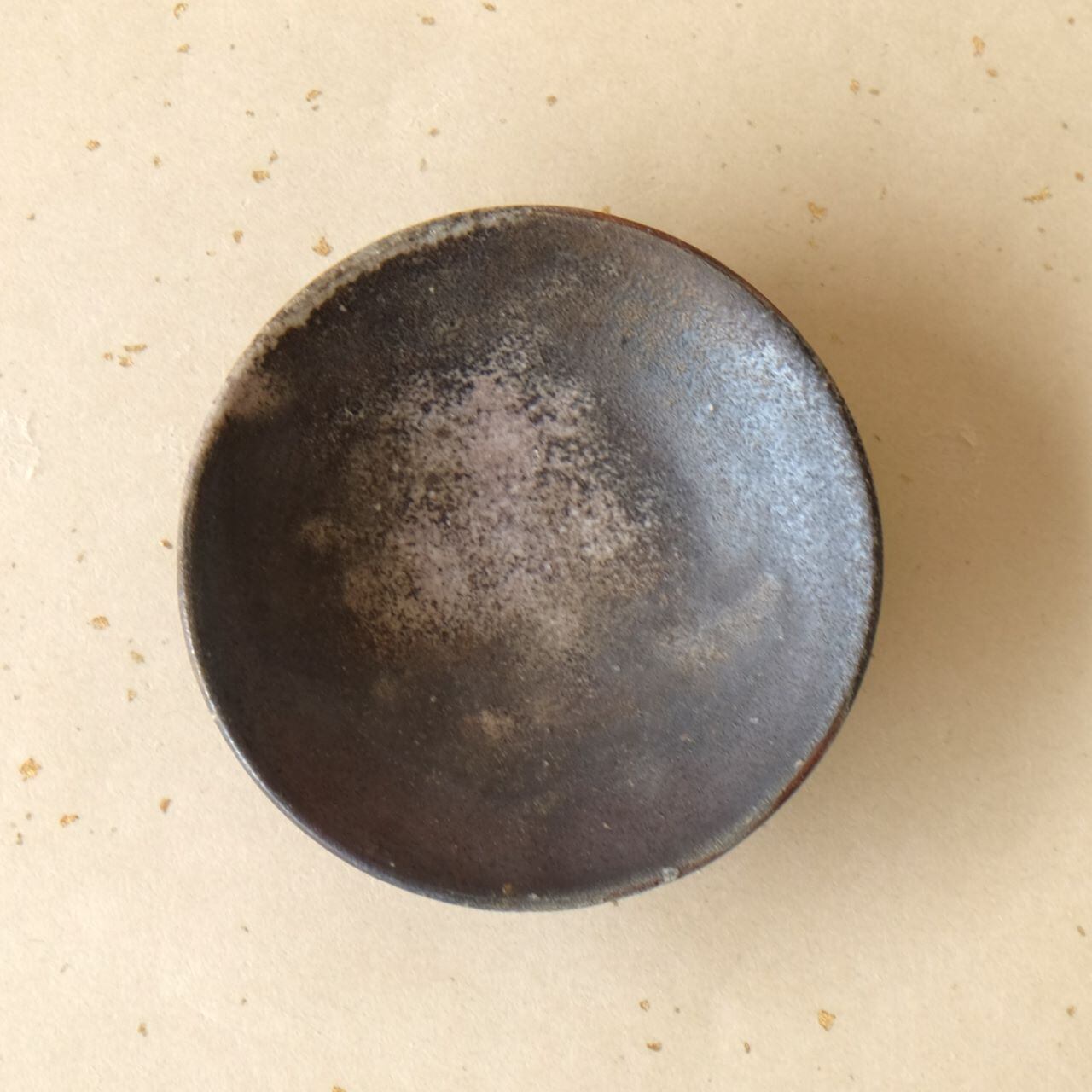やや深さのあるシンプルなデザインの豆鉢です。木炭のガスの影響を受けて、内側と外側の両面に多彩な変化を見せています。