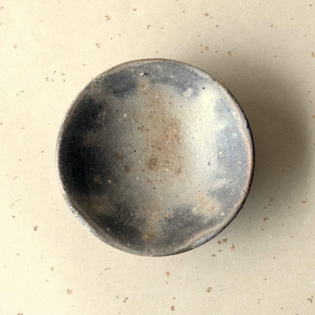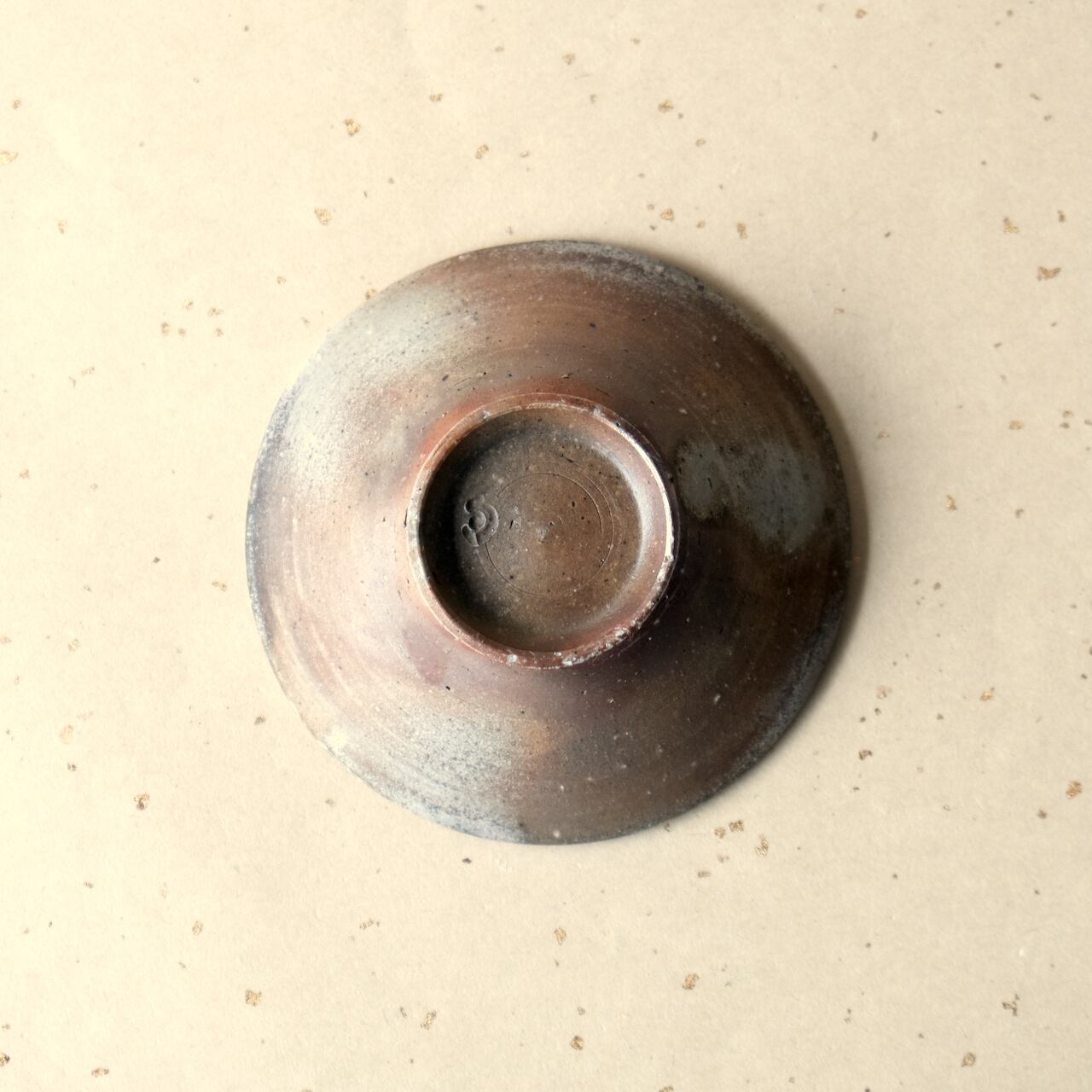 やや深さのあるシンプルなデザインの豆鉢です。木炭のガスの影響を受けて、外側は多彩な変化を見せ、内側は金色がかった珍しい変化を見せています。