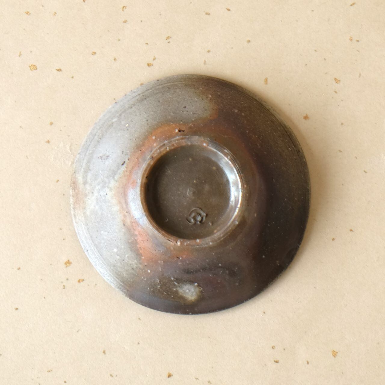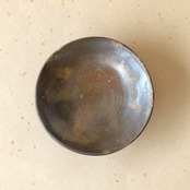 やや深さのあるシンプルなデザインの豆鉢です。木炭のガスの影響を受けて、外側は多彩な変化を見せ、内側は金色がかった珍しい変化を見せています。