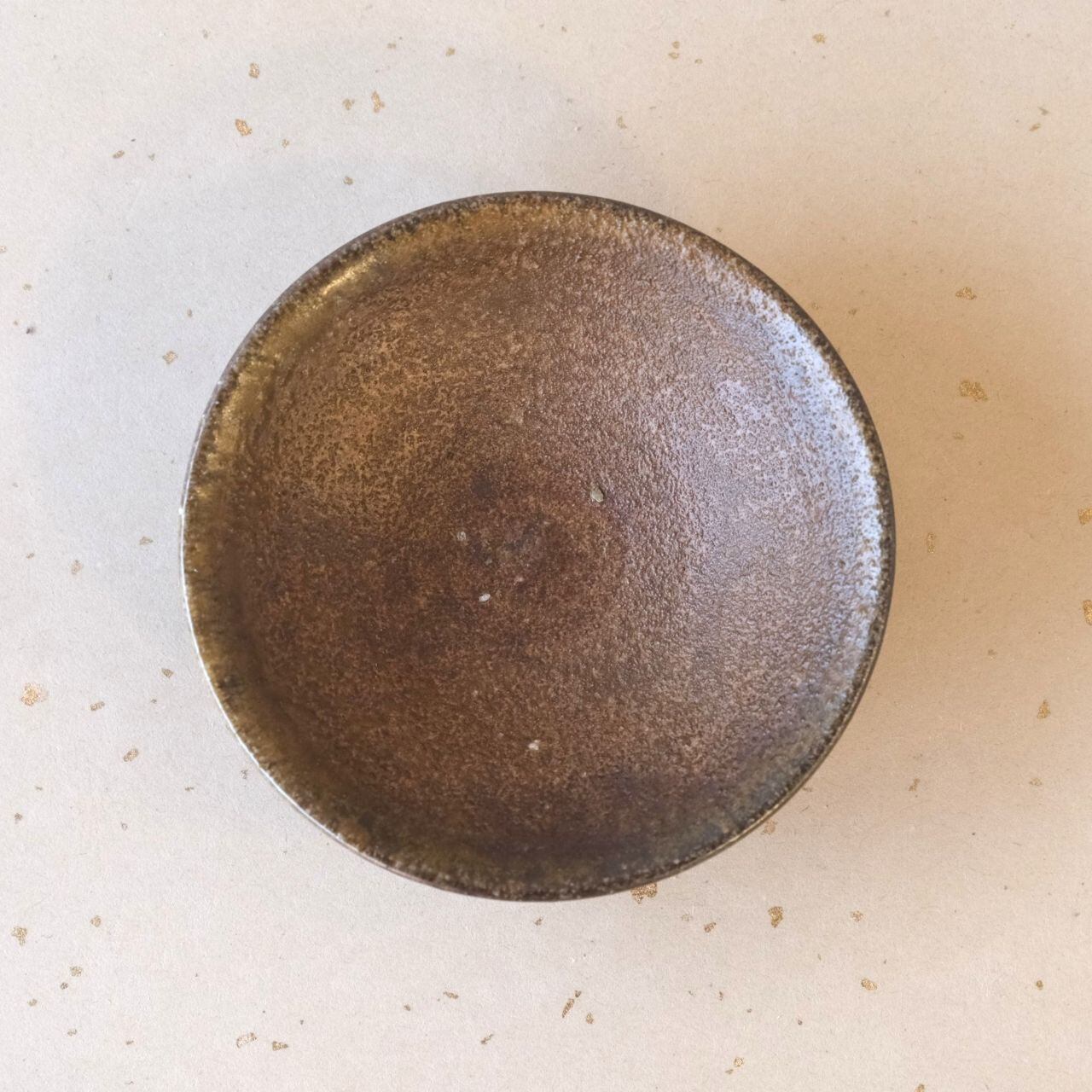 やや深さのあるシンプルなデザインの豆鉢です。燃料の松割木の灰がかかった部分は、黄色味がかった色合いになっています。