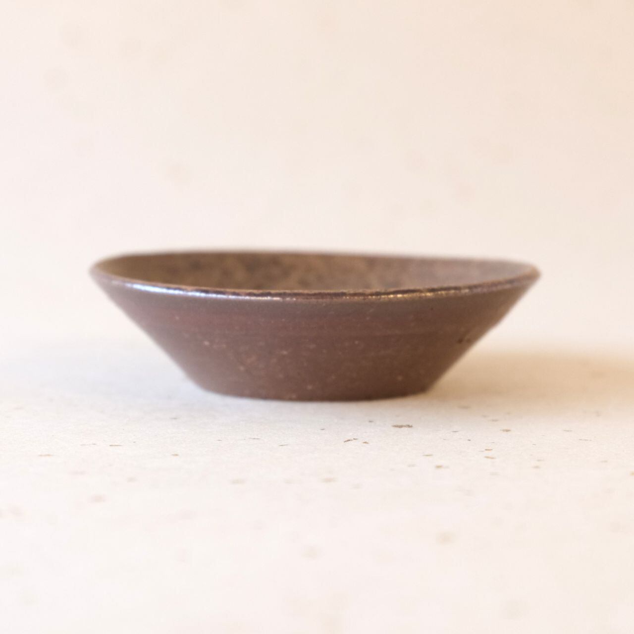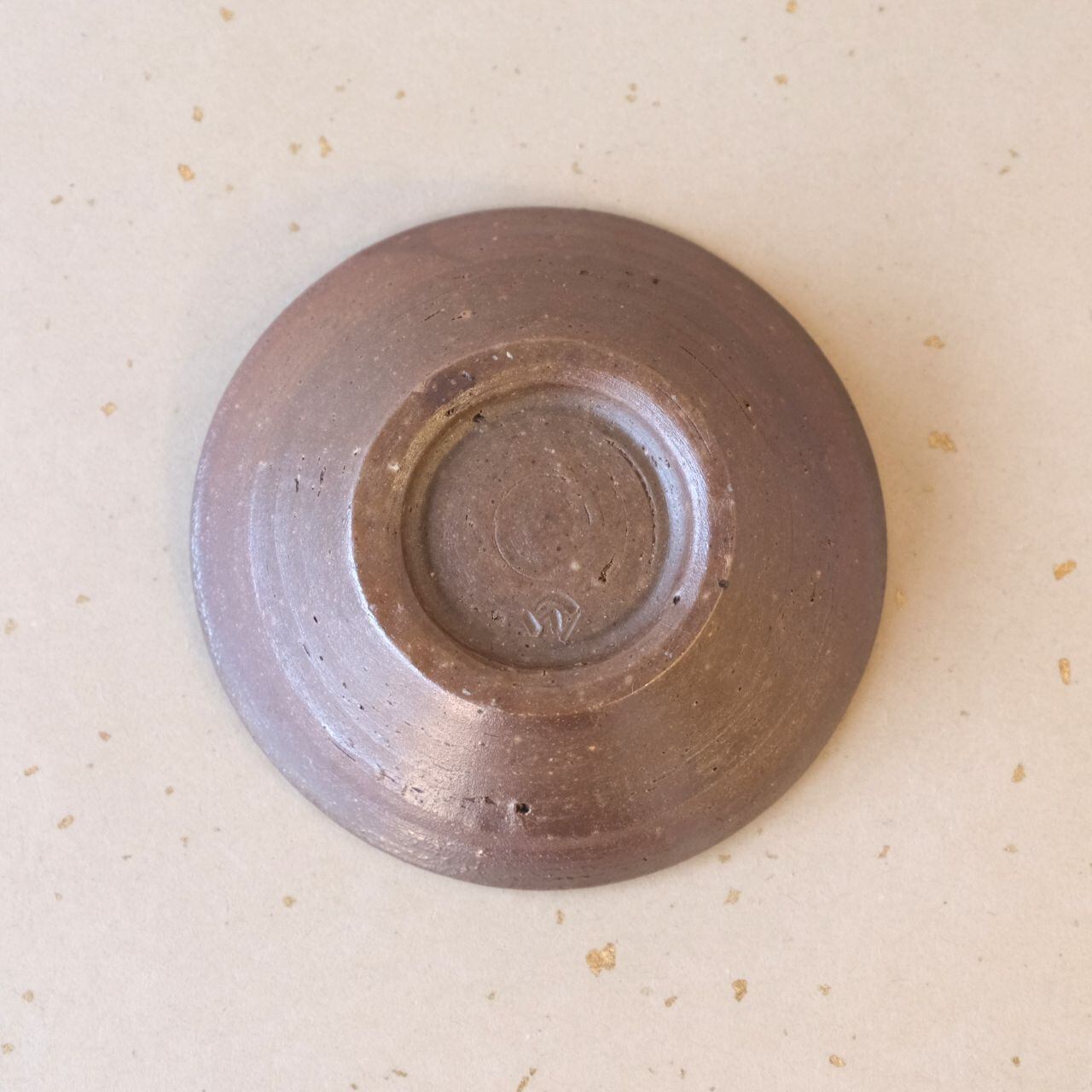 やや深さのあるシンプルなデザインの豆鉢です。燃料の松割木の灰がかかった部分は、黄色味がかった色合いになっています。