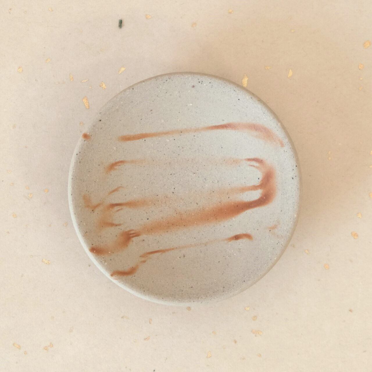 やや高めの高台を削り出した台付きの豆鉢です。ワラの触れた部分が赤く発色し、地色とのコントラストを生み出しています。