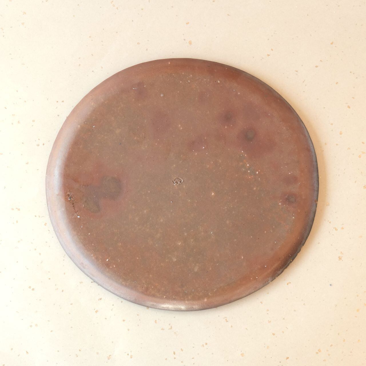 シンプルな楕円形のお皿です。縁を軽く曲げているので汁気のあるものでも盛り付けることができます。片面には松割木の灰がかかり、丸い抜け模様(牡丹餅)がアクセントになっています。