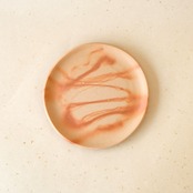 シンプルな丸形のお皿です。縁を軽く曲げているので汁気のあるものでも盛り付けることができます。ワラの接した部分が赤く発色し、明るい雰囲気に仕上がっています。