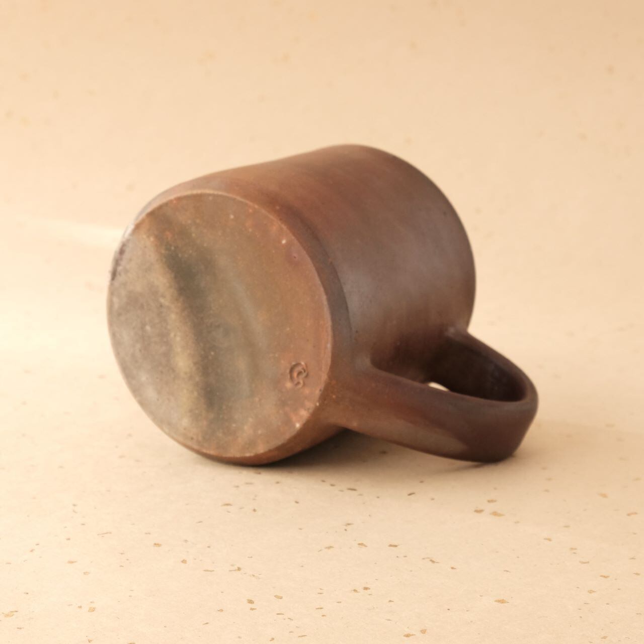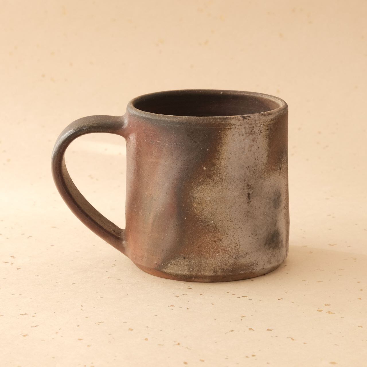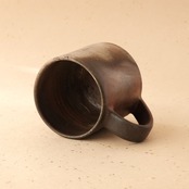 標準サイズのマグです。普段使いとしてもさまざまな用途でご使用いただけます。うつわの側面には、木炭のガスの作用により、青味がかった色合いが現れています。