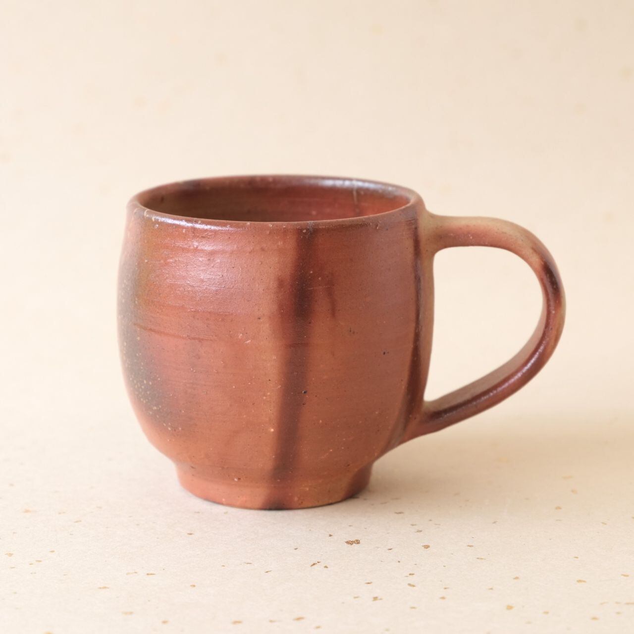 標準サイズのマグです。普段使いとしてもさまざまな用途でご使用いただけます。全体的に明るい色合いになっており、藁を巻いていた部分は濃赤色のラインとなっています。