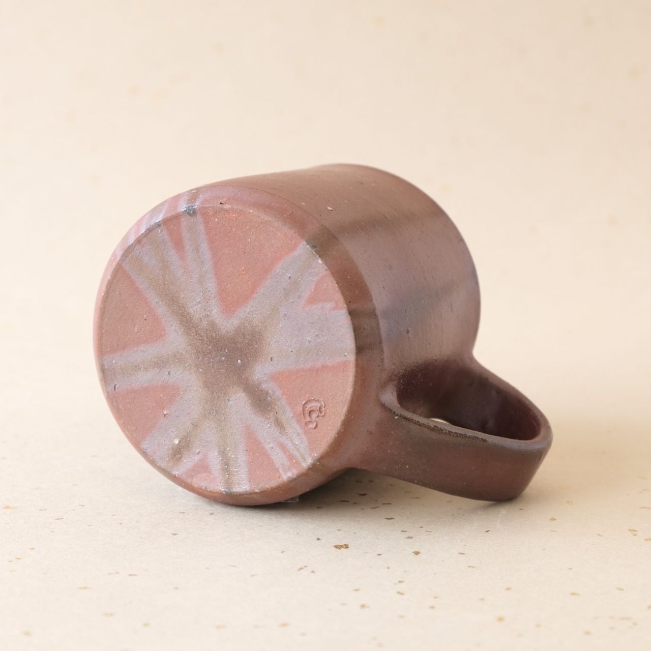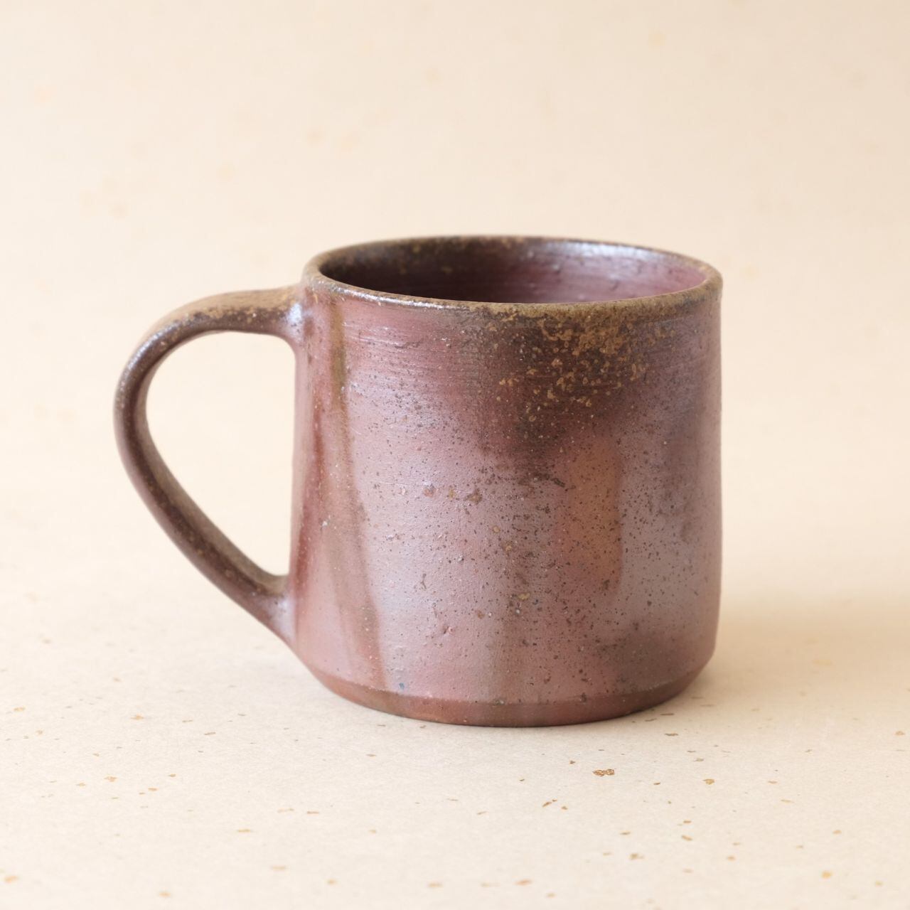 標準サイズのマグです。普段使いとしてもさまざまな用途でご使用いただけます。全体的に落ち着いた色合いになっており、藁を巻いていた部分は濃赤色のラインとなっています。