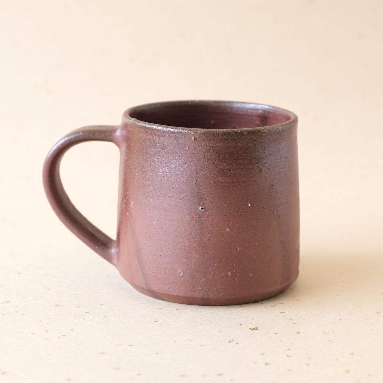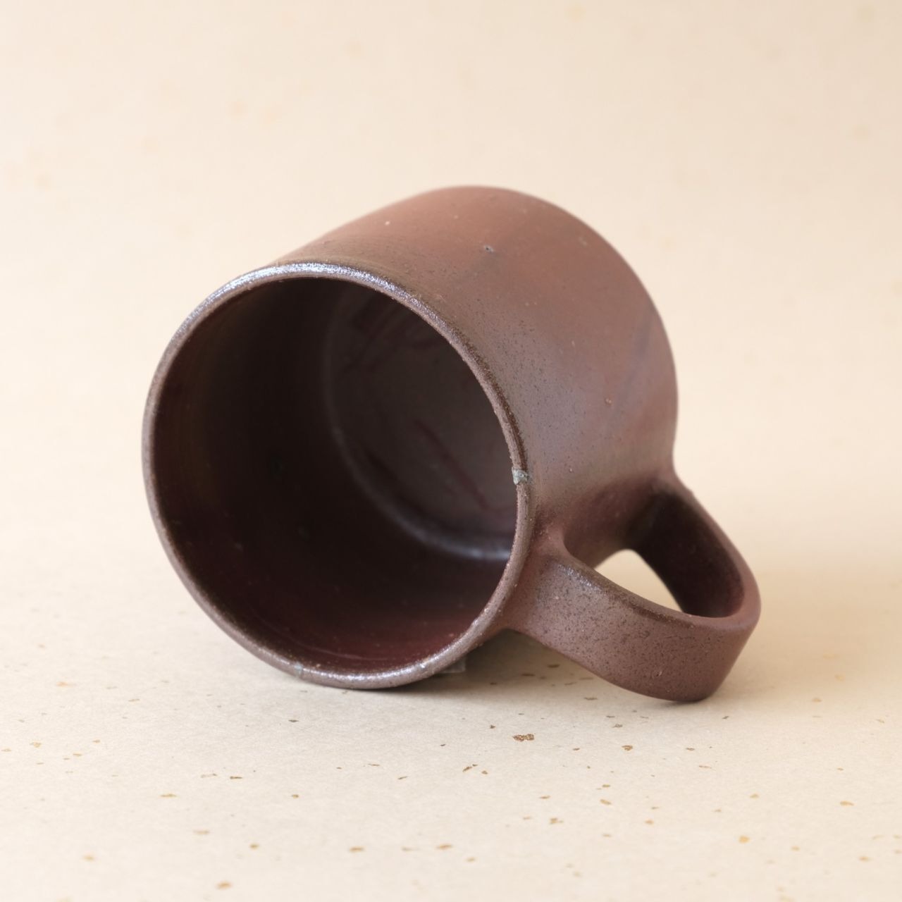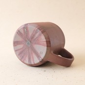 標準サイズのマグです。普段使いとしてもさまざまな用途でご使用いただけます。全体的に落ち着いた色合いになっており、藁を巻いていた部分は濃赤色のラインとなっています。