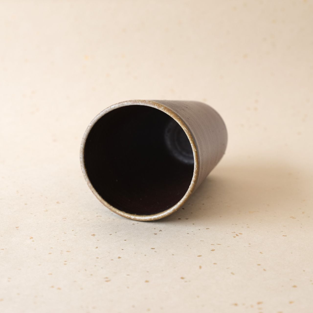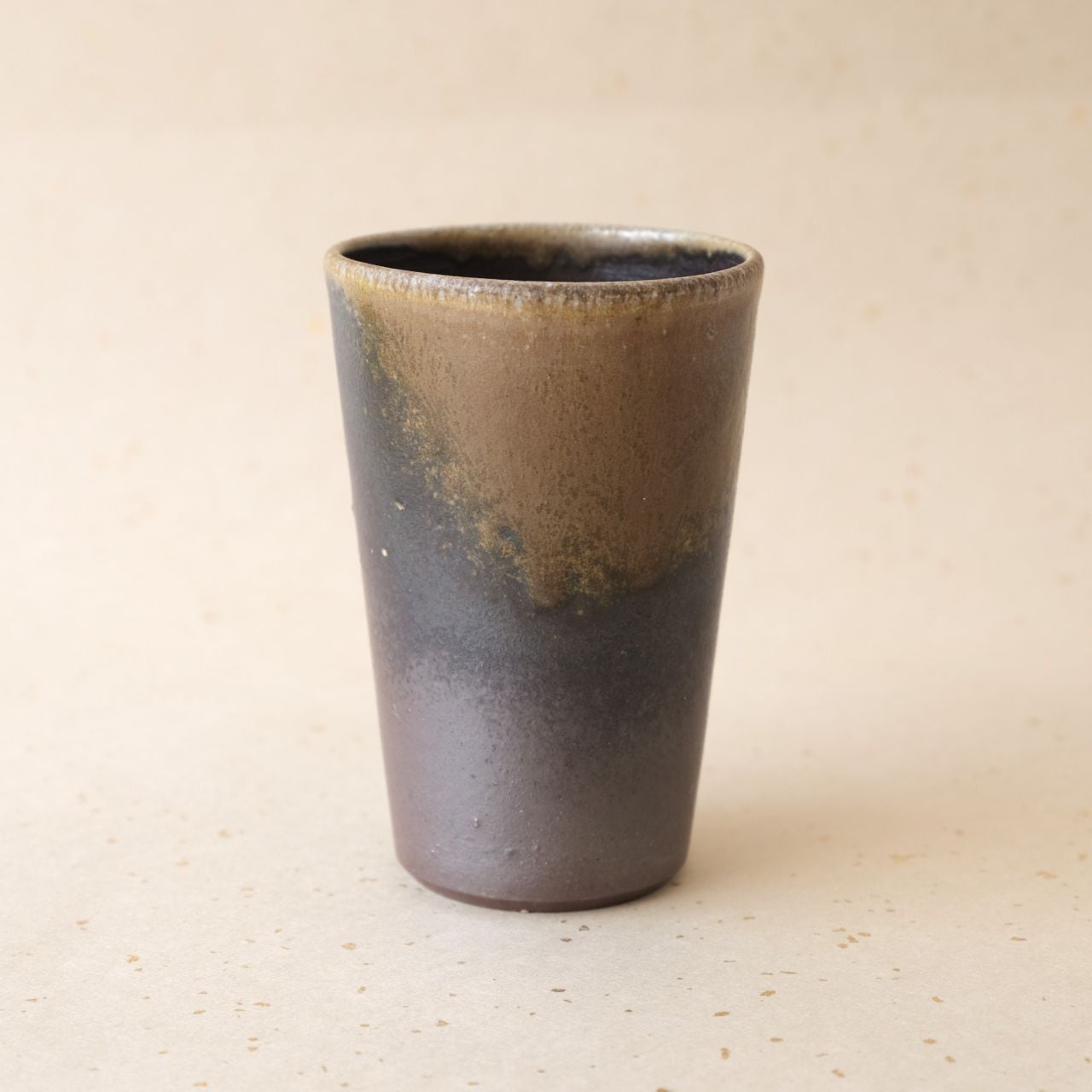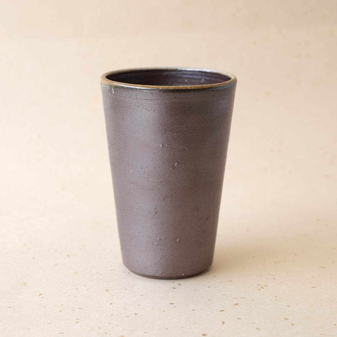 シンプルなデザインのビアマグです。ビールが美味しくいただけると言われています。燃料の松割木の灰が付着した部分が溶けだし、黄色味おびた変化となっています。