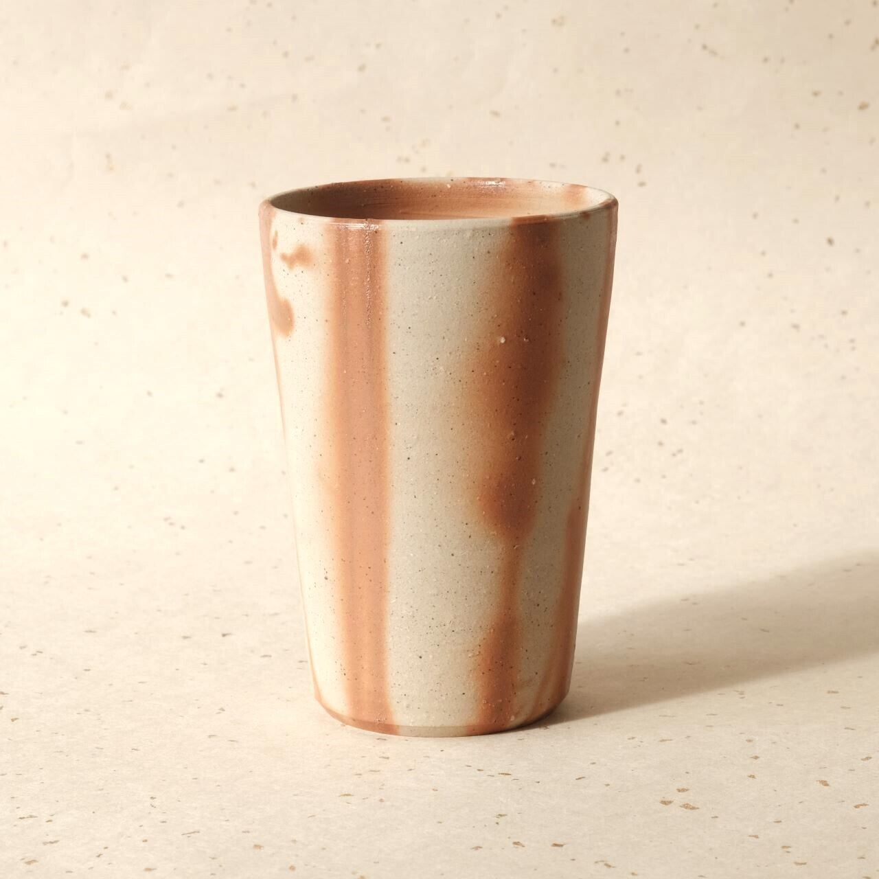 シンプルなデザインのビアマグです。ビールが美味しくいただけると言われています。ワラを巻いていた部分が赤く発色し、景色となっています。