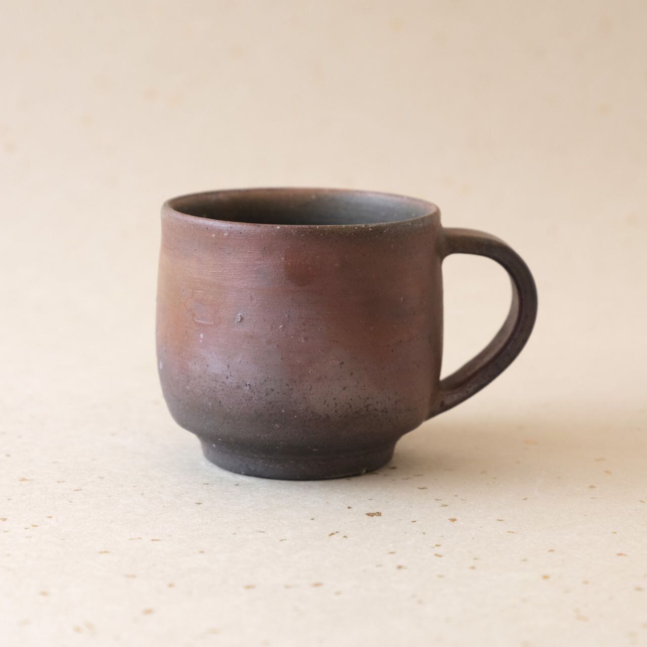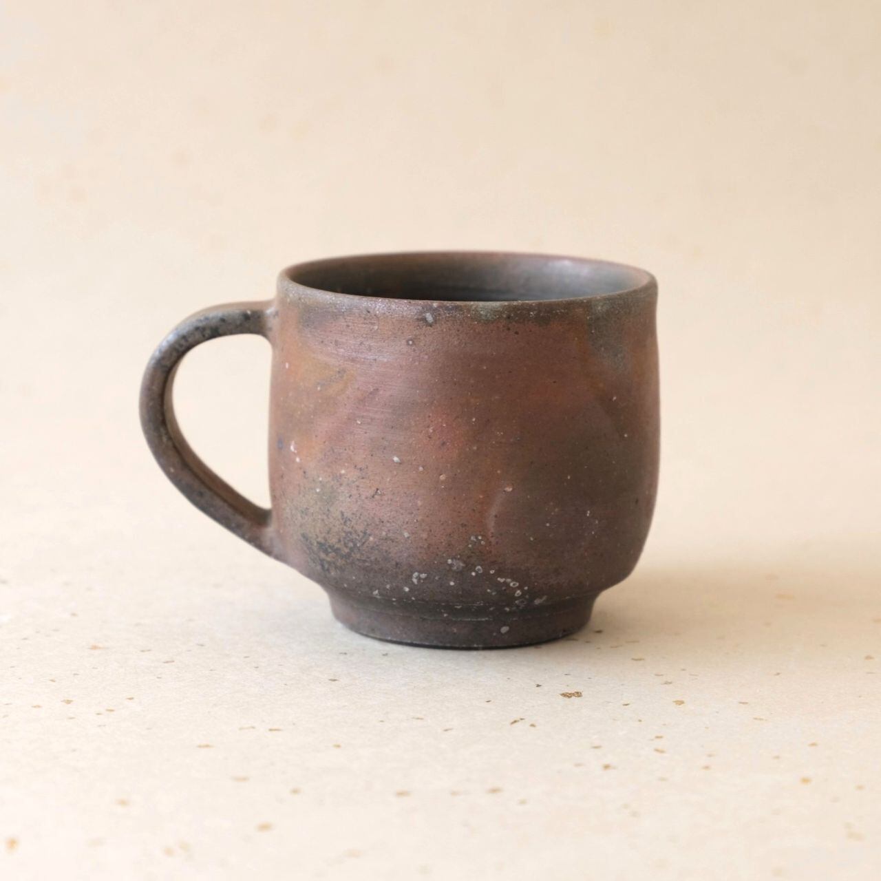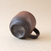 標準サイズのコーヒーカップです。コーヒーの苦味を和らげてくれると言われています。うつわの側面には、木炭のガスの作用により、さまざまな景色が現れています。