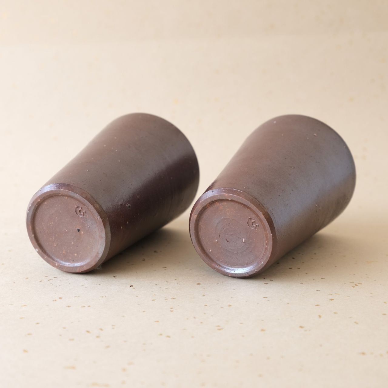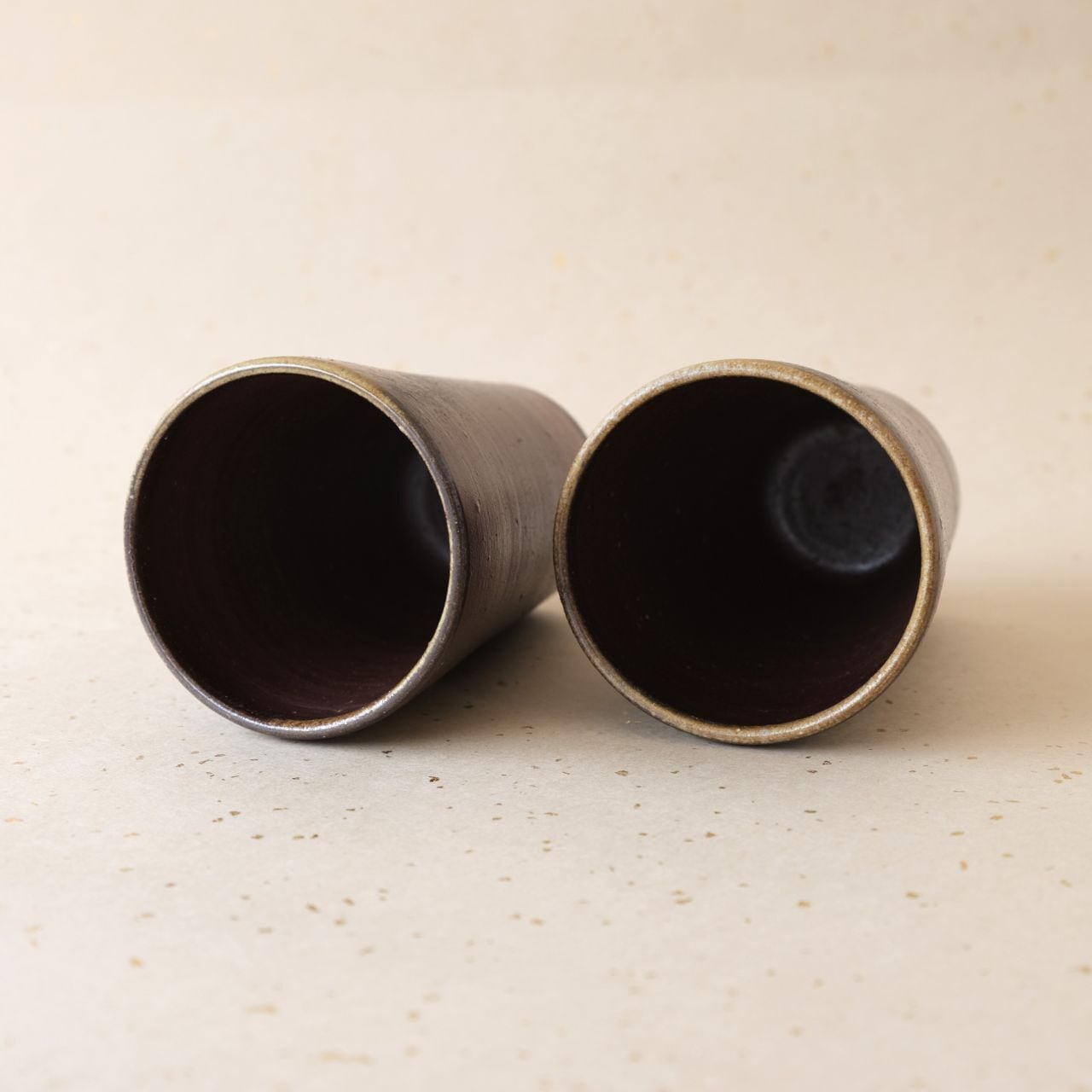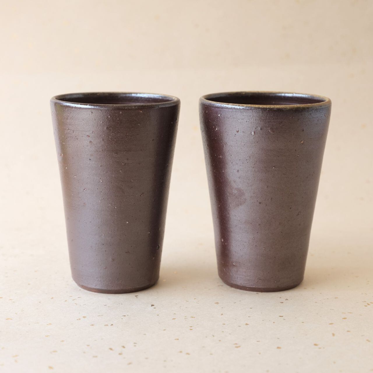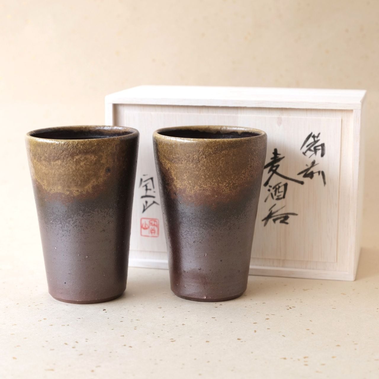 シンプルなデザインのビアマグです。ビールが美味しくいただけると言われています。燃料の松割木の灰が付着した部分が溶けだし、黄色味おびた変化となっています。