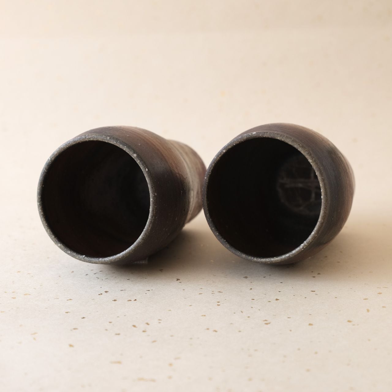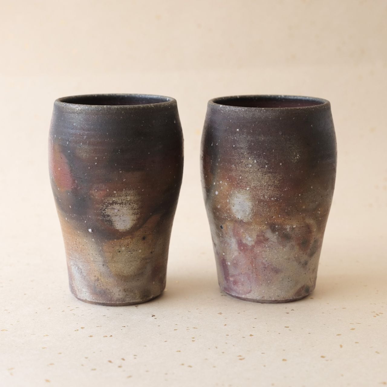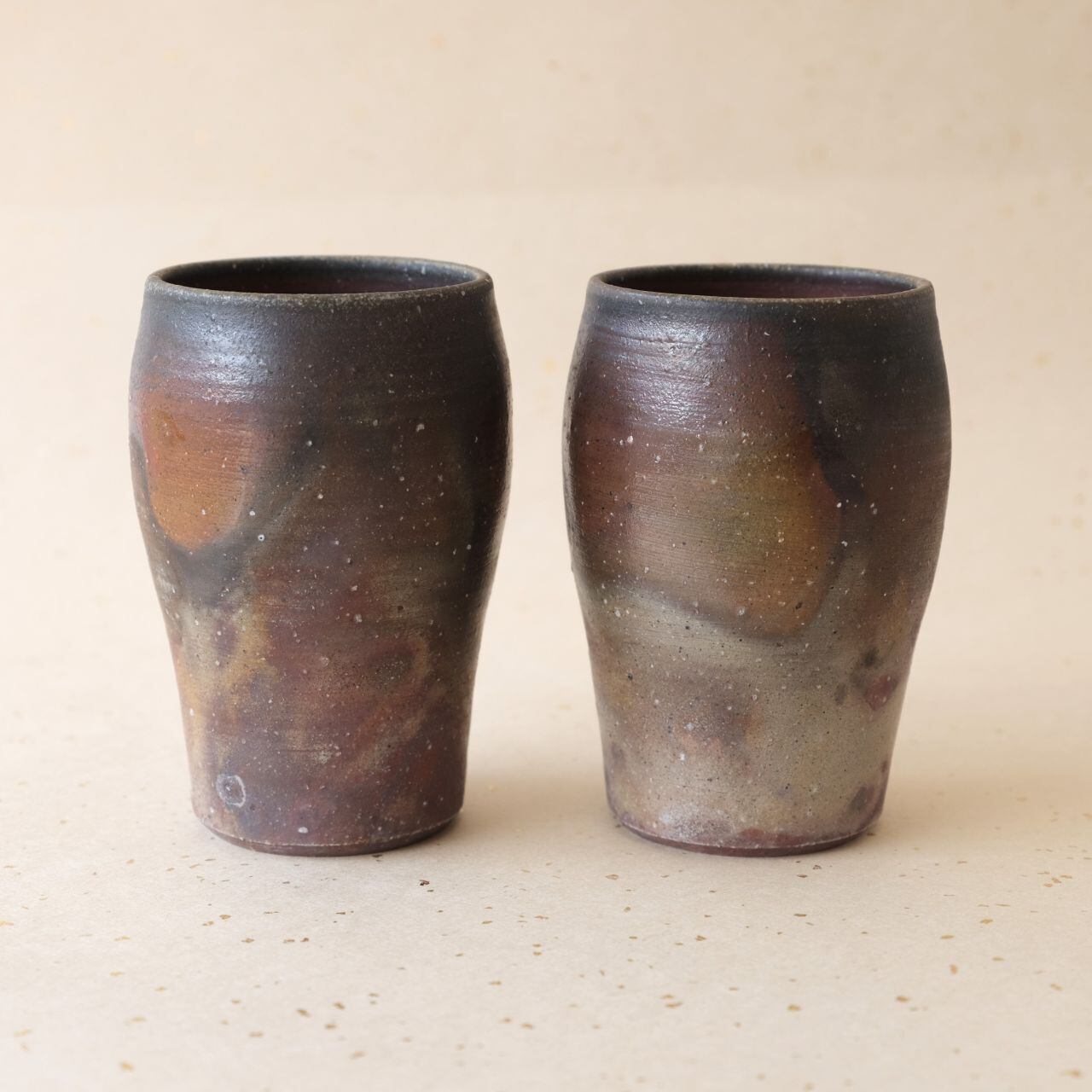 丸みおびたデザインのビアマグセットです。ビールが美味しくいただけると言われています。木炭のガスの作用により変化が生まれ、独特のグラデーションとなっています。