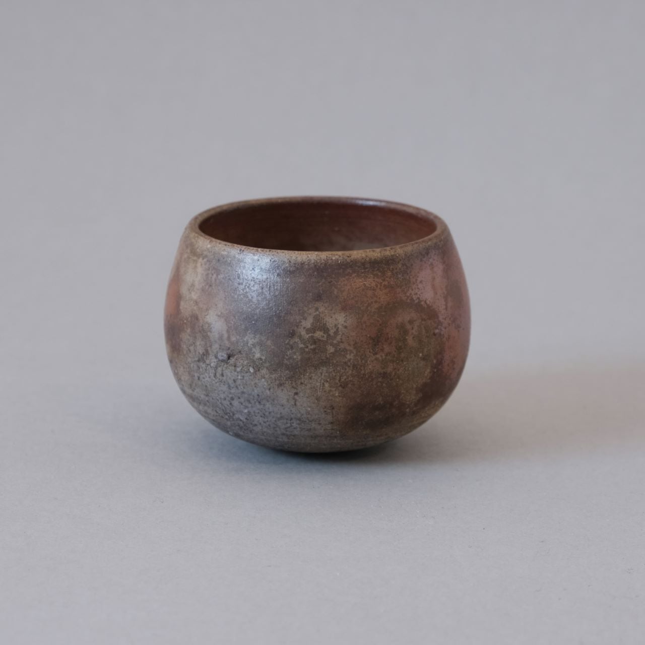ゆらゆらと揺れるぐい呑です。窯内に積もった木炭や松割木の灰の影響を受け、さまざまな変化が現れています。